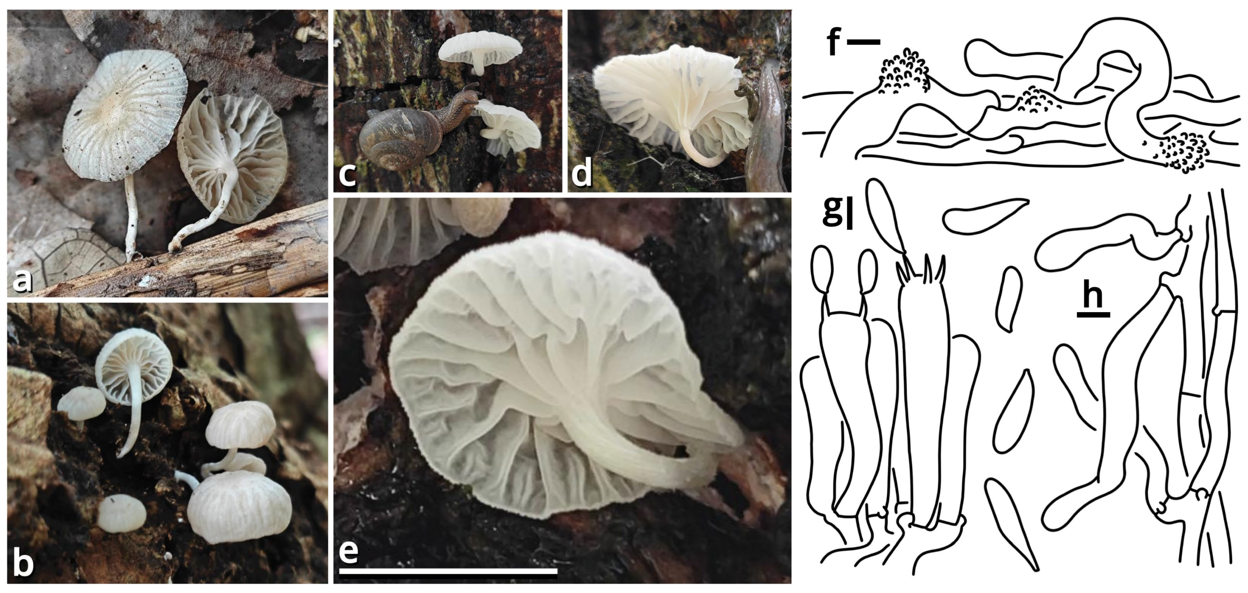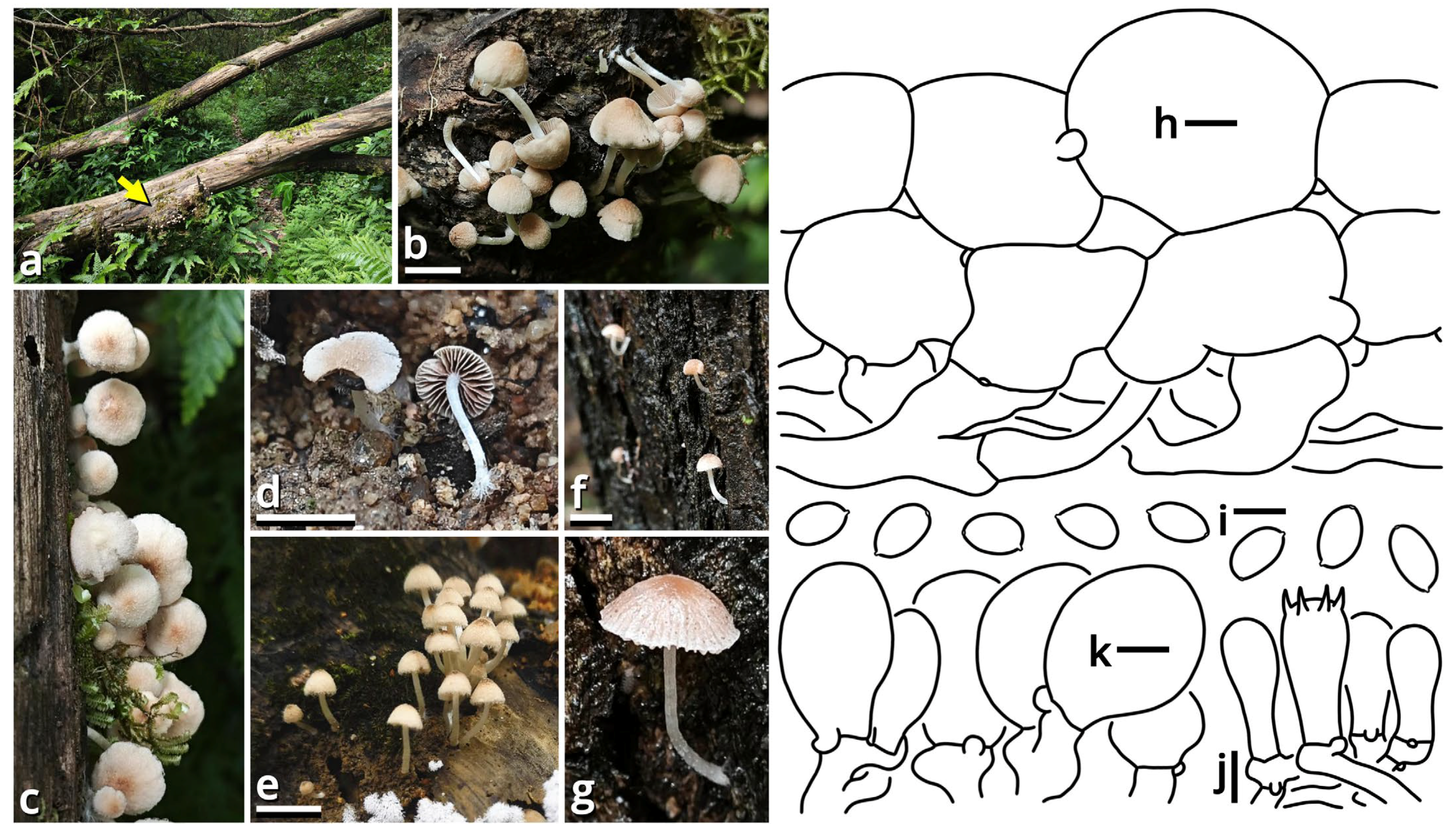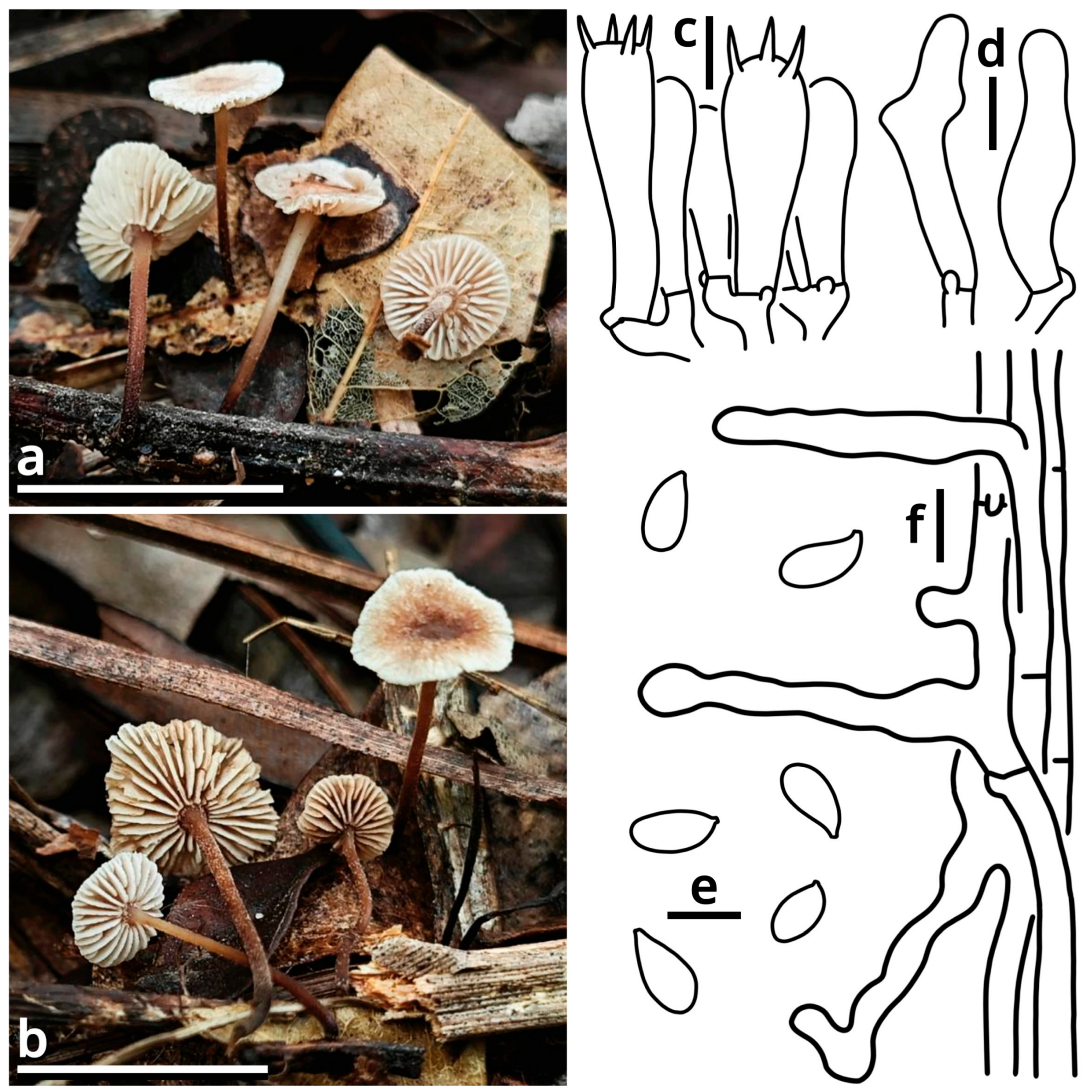 - Petersen, R.H.; Hughes, K.W. Metacampanella gen. nov.: The Campanella dendrophora complex. Mycologia 2025, 16, 210–237. [Google Scholar] [CrossRef]