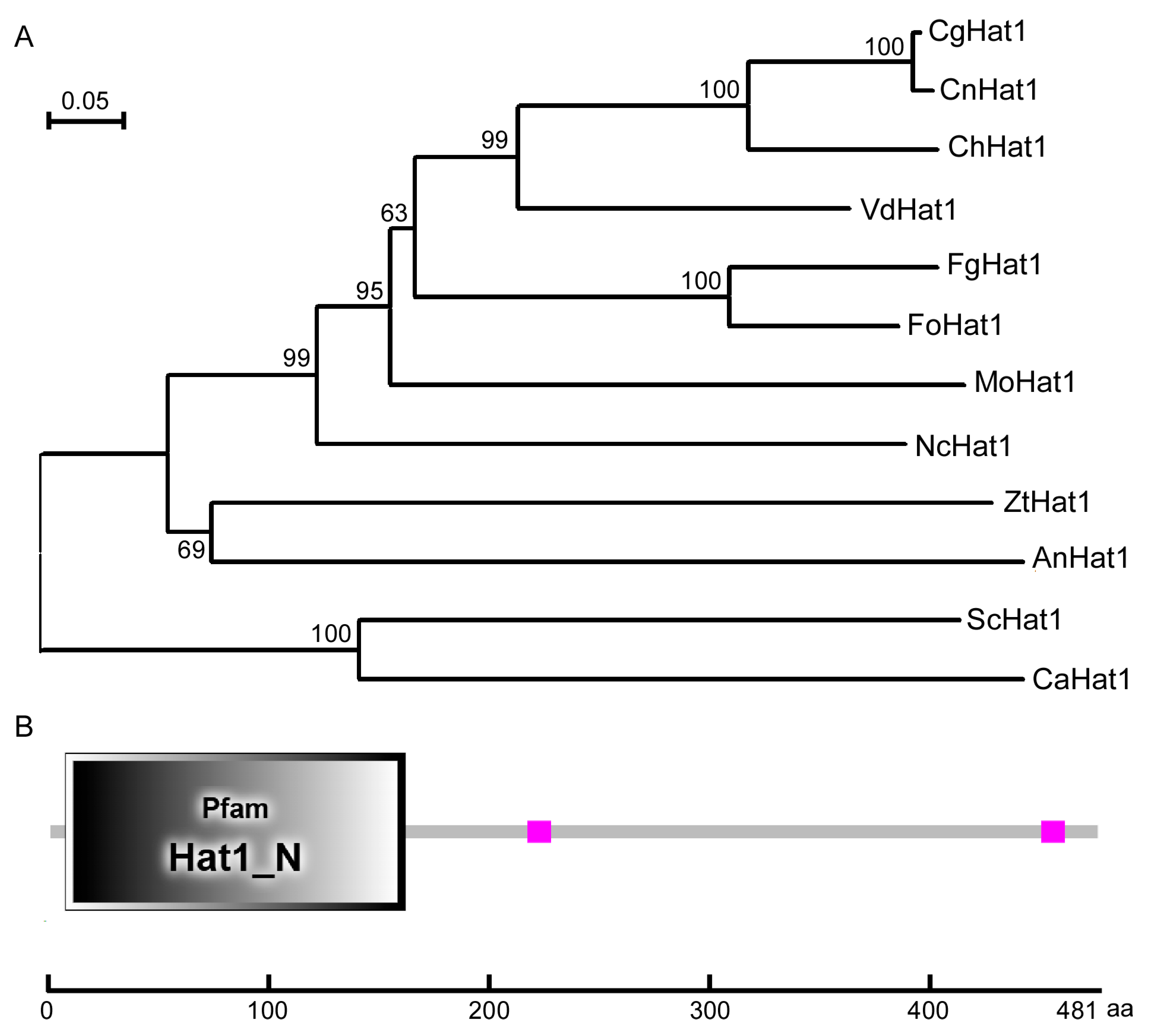 3.1. Identification and Bioinformatic Analysis of CgHat1