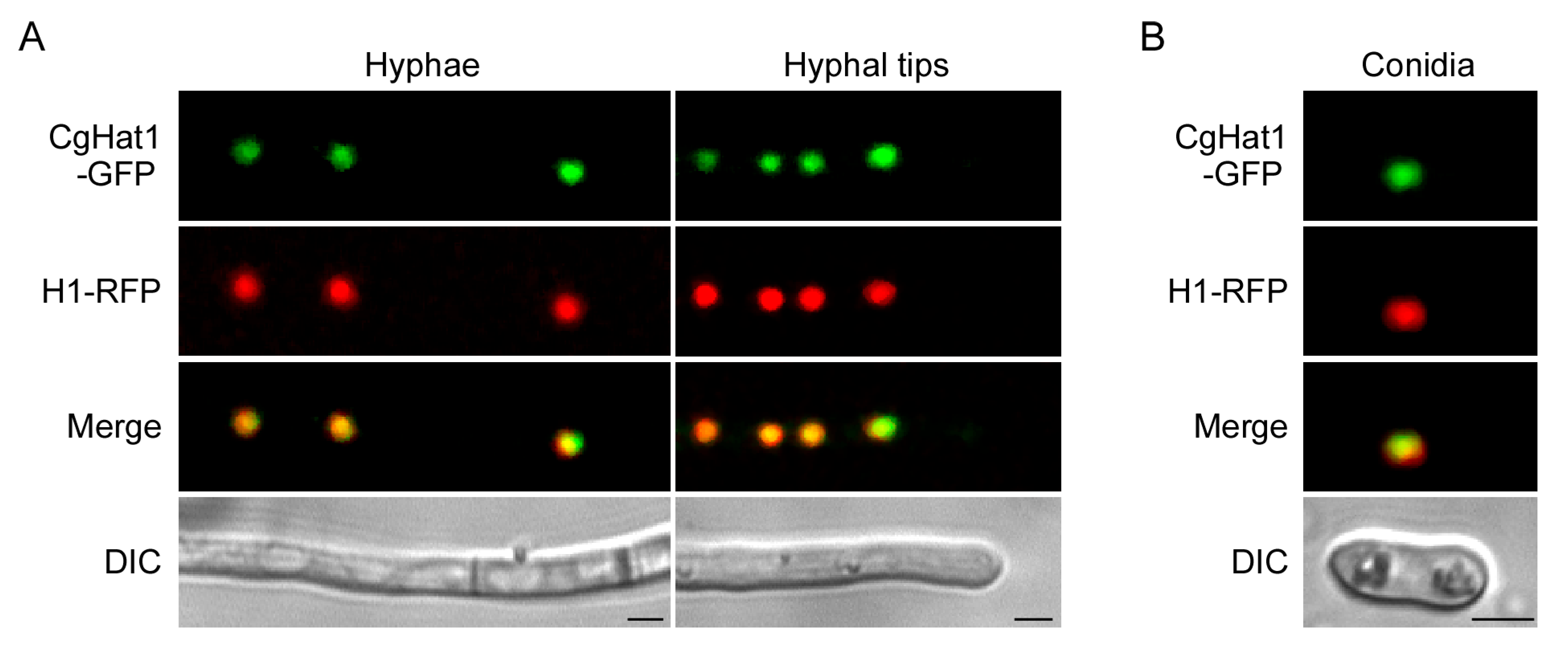 3.7. CgHat1 Plays Important Roles in Conidial Germination and Appressorial Formation