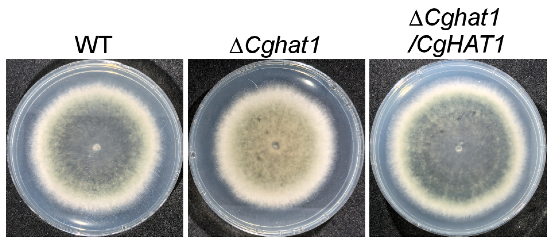 Jia, B.; Zhou, Q.; Liu, Y.; Chen, Z.; Liao, M.; Zhu, C.; Xiao, C.; Ai, J. The Histone Acetyltransferase CgHat1 Regulates Growth, Development, and Pathogenicity of Colletotrichum gloeosporioides. J. Fungi 2025, 11, 768. https://doi.org/10.3390/jof11110768
