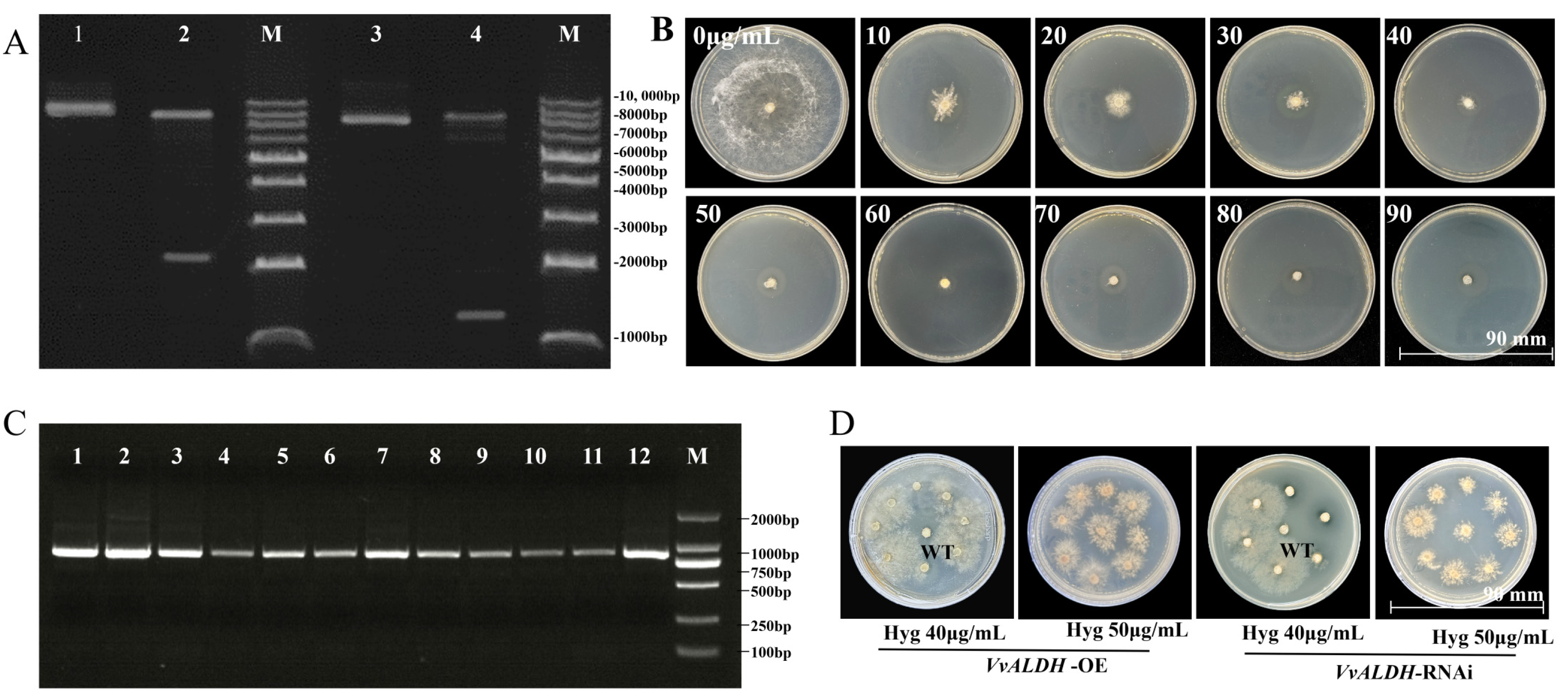 3.2.1. Validation of VvALDH Overexpression and Silencing Vectors, and Hyg Sensitivity Assay