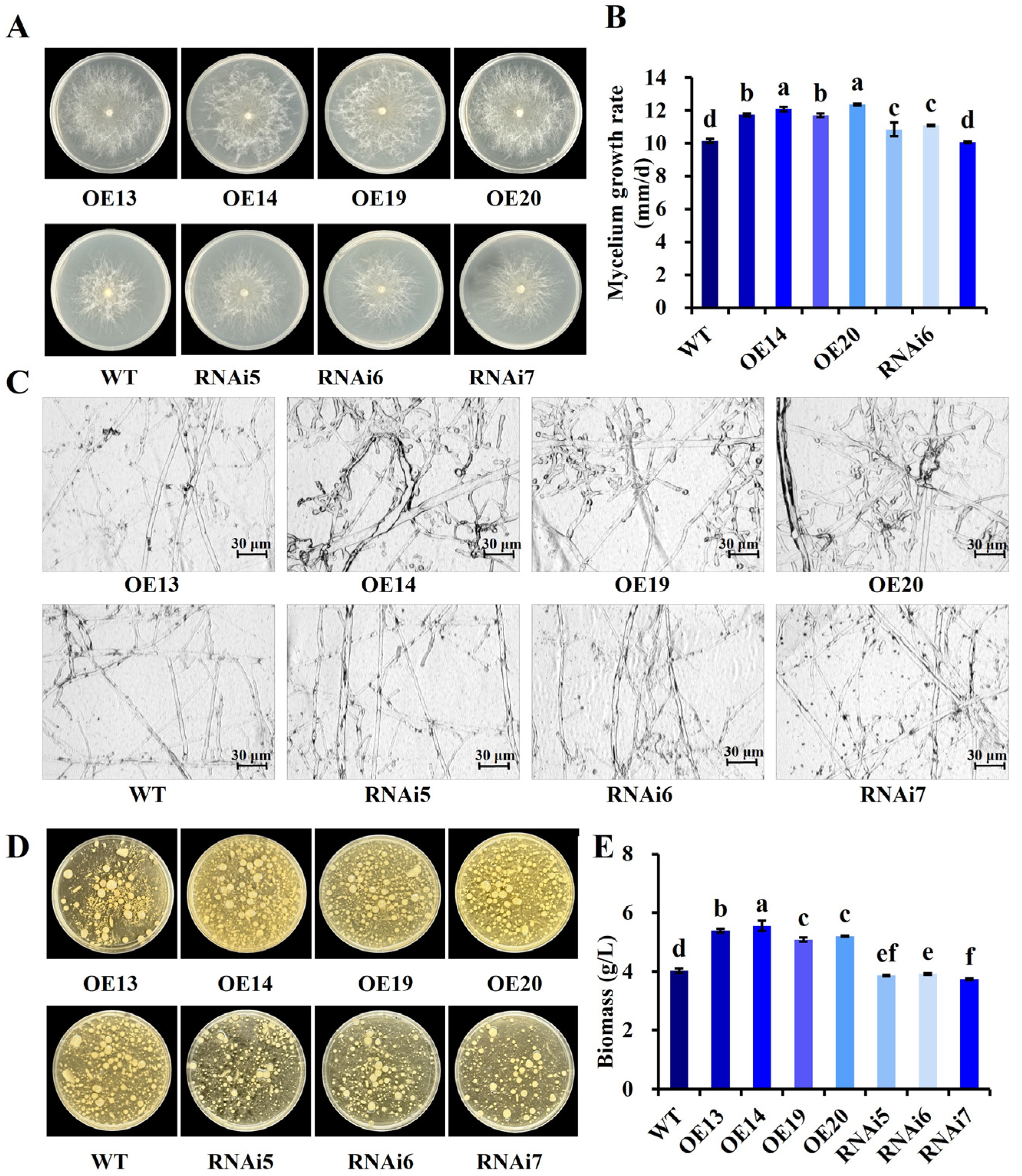 3.2.3. Effects of VvALDH on Mycelial Morphology and Growth Rate