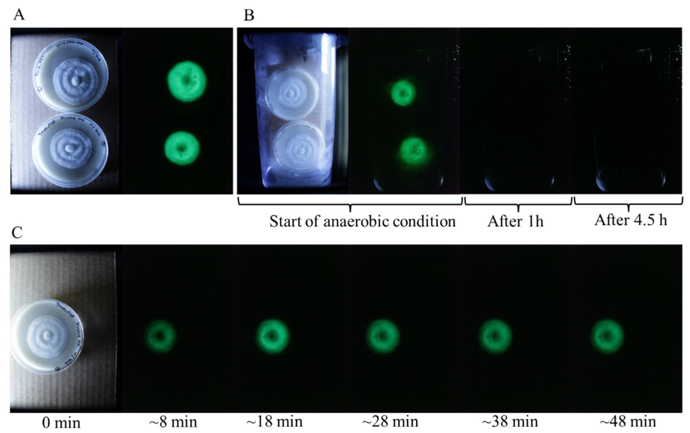 3.2. Bioluminescence of P. stipticus Under Anaerobic Condition