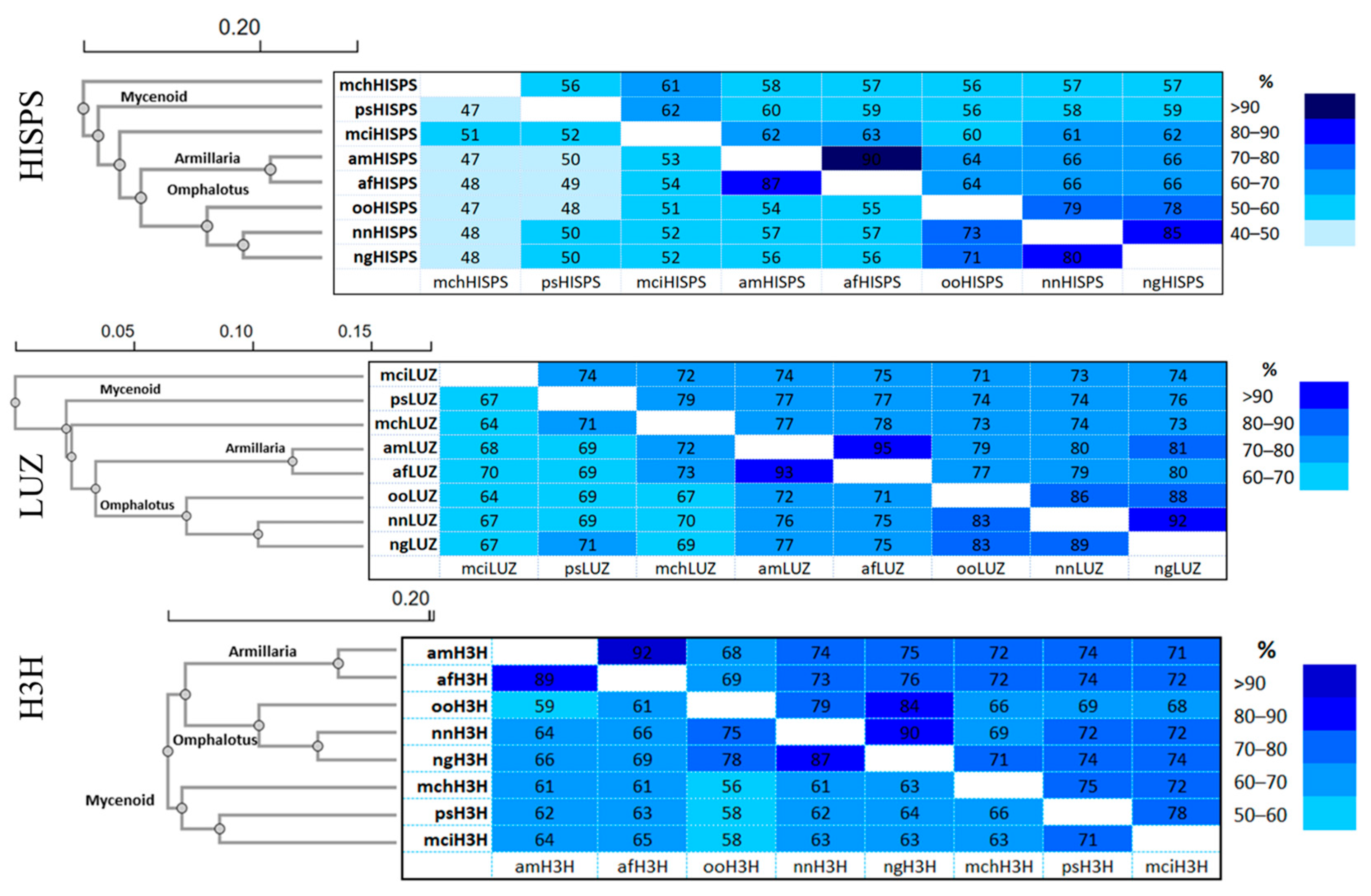 - Campanella, J.J.; Bitincka, L.; Smalley, J. MatGAT: An Application That Generates Similarity/Identity Matrices Using Protein or DNA Sequences. BMC Bioinform. 2003, 4, 29. [Google Scholar] [CrossRef]