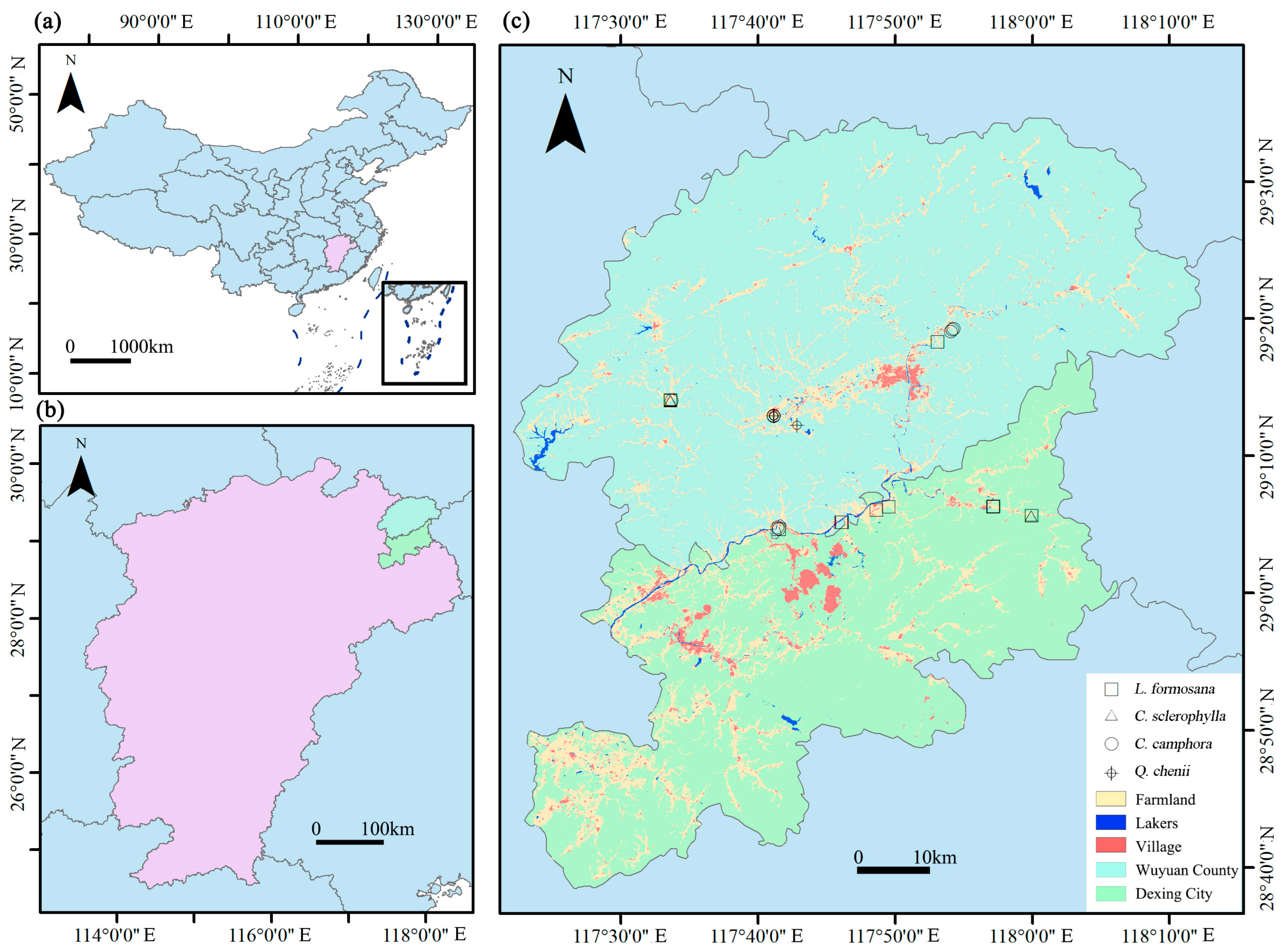 - Wang, Y.; Tu, H.; Zheng, J.; Li, X.; Wang, G.; Guo, J. Ecological stoichiometric characteristics of plant-litter-soil among different forest stands in a limestone region of China. Plants 2025, 14, 1758. [Google Scholar] [CrossRef]