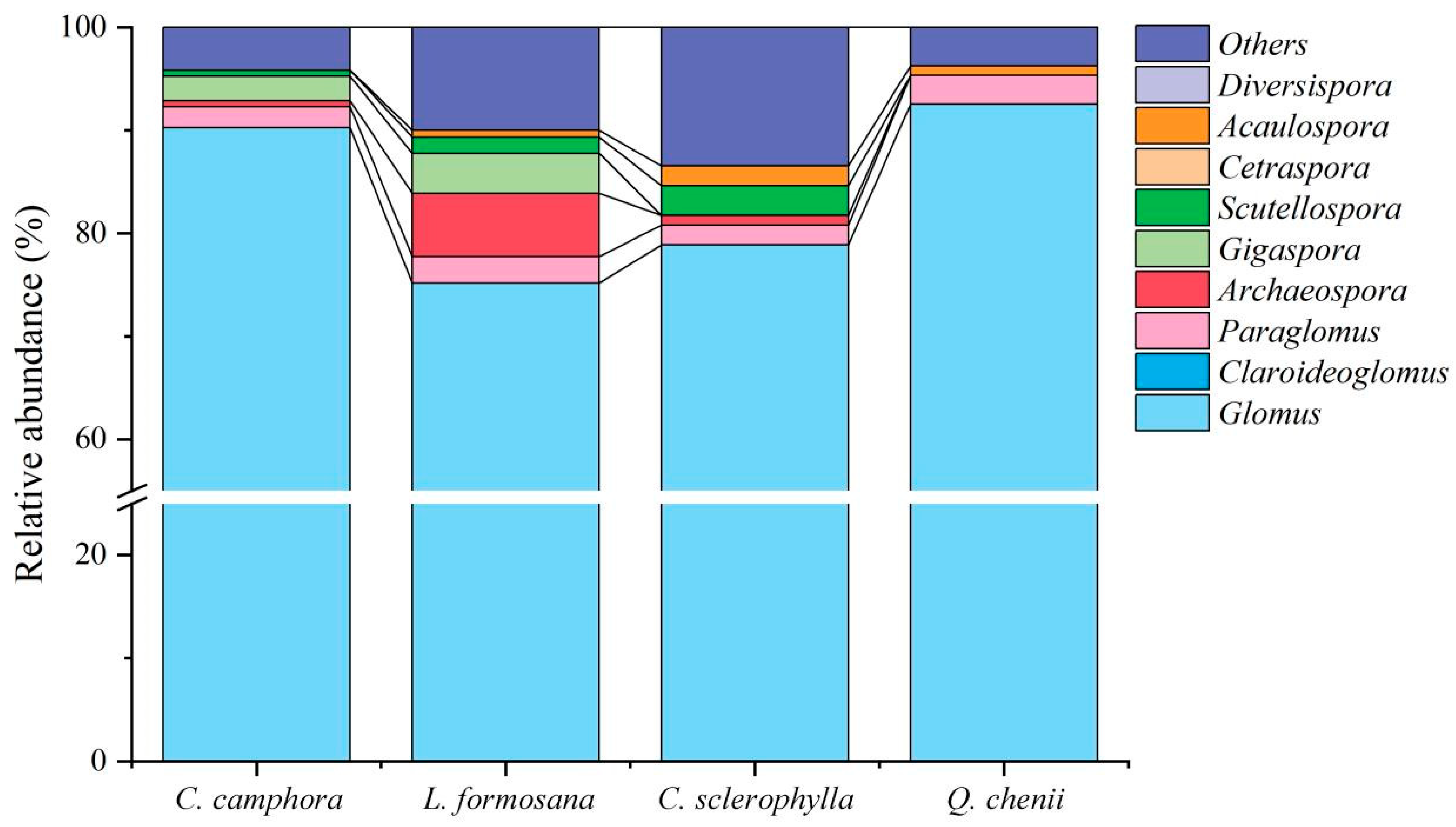 2.4. Soil AM Fungal High-Throughput Sequencing