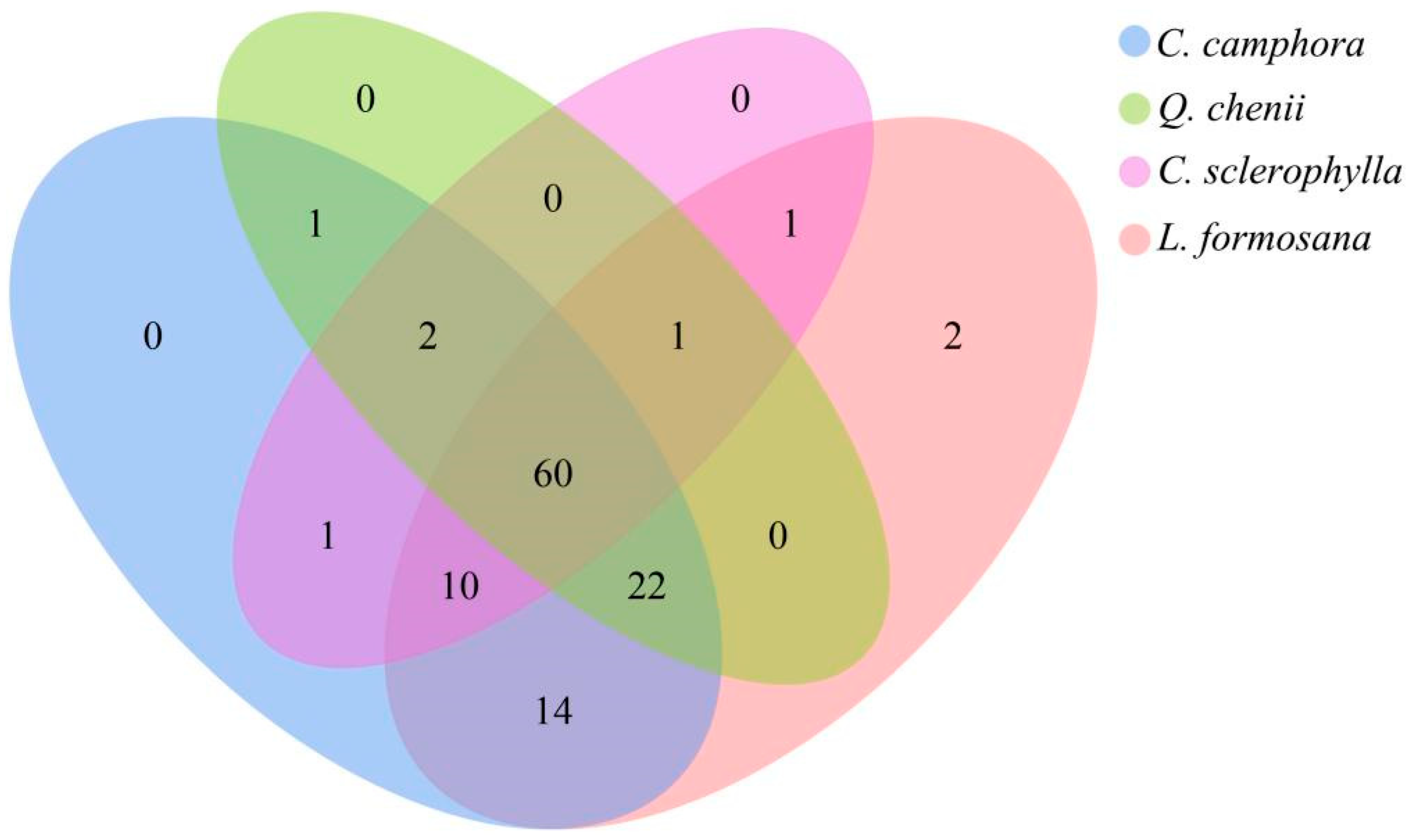 | Q. chenii | 153.65 ± 28.57 a | 116.74 ± 23.25 a | 8.53 ± 1.29 a | 32.64 ± 5.92 a | 31.78 ± 4.5 a | 63.1 ± 4.52 b | 19.4 ± 3.22 a | 0.3 ± 0.05 a |