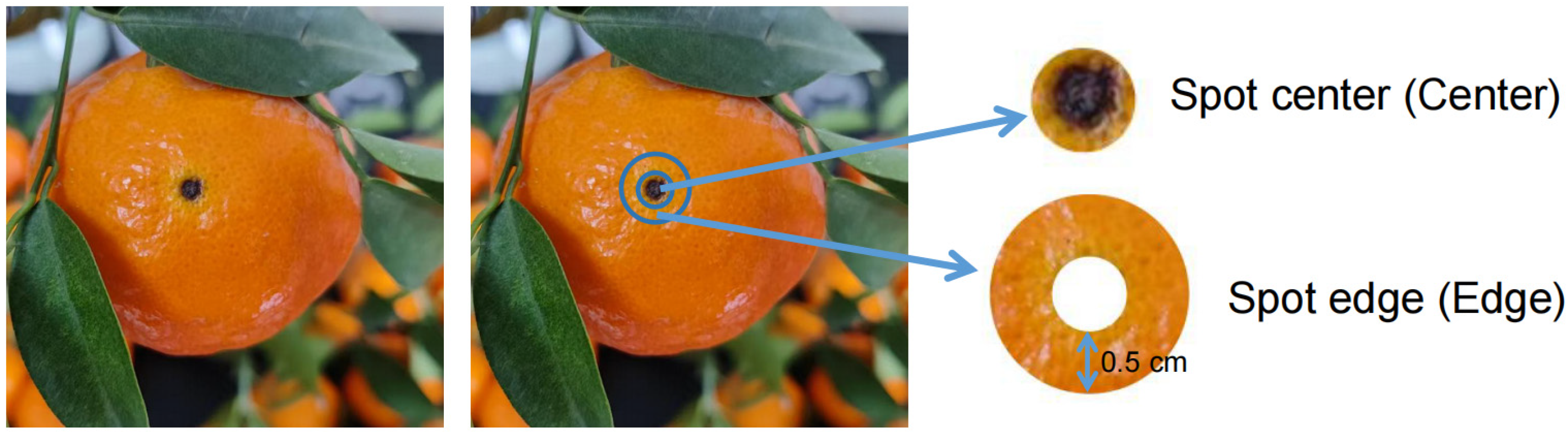 - Chen, C.S.; Huang, F.; Cheng, L.; Feng, C.G.; Huang, T.J.; Li, H.Y. Identification of the Pathogenic Fungus Causing Brown Spot on Tangerine (Citrus reticulata CV. Hongjv). Acta Phytopathol. Sin. 2011, 41, 449–455. (In Chinese) [Google Scholar]