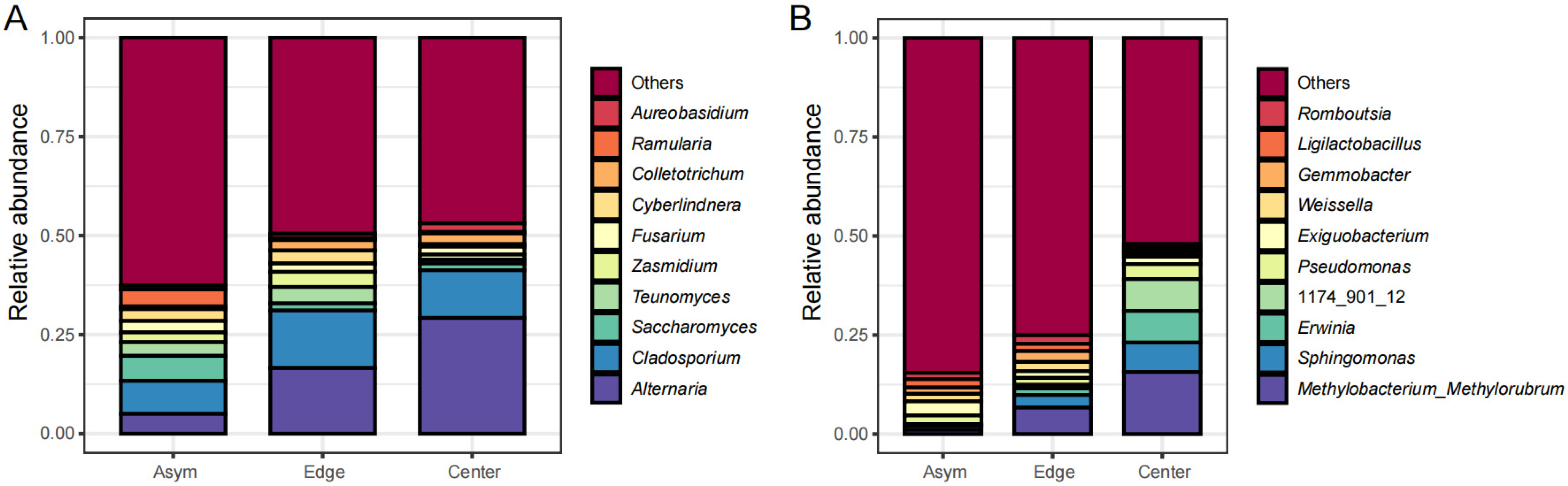3.2. Fungal and Bacterial Genera of the Fruits of Alternaria Brown Spot