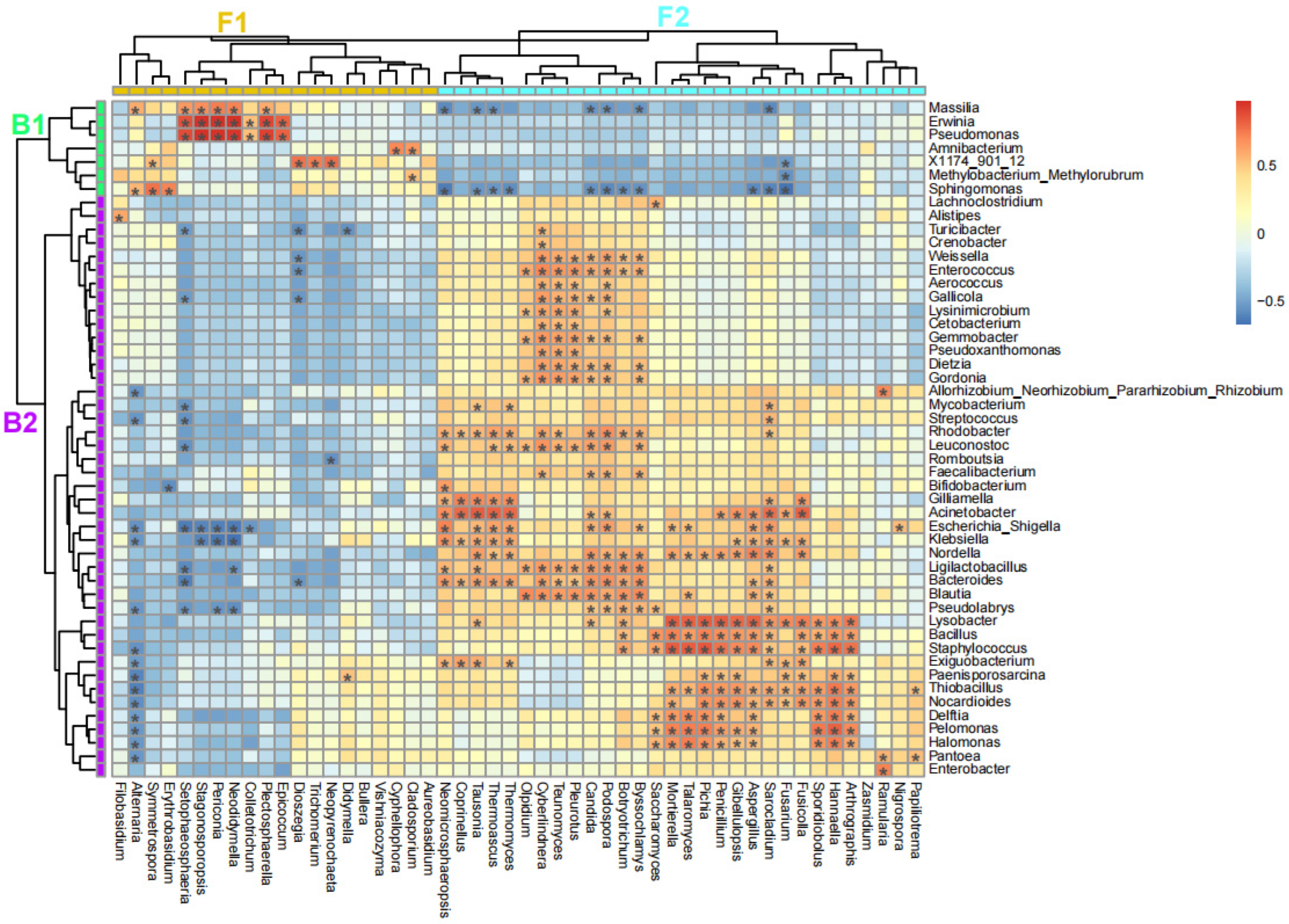 3.3. Fungi–Bacteria Correlation Pattern of the Fruits in Alternaria Brown Spot