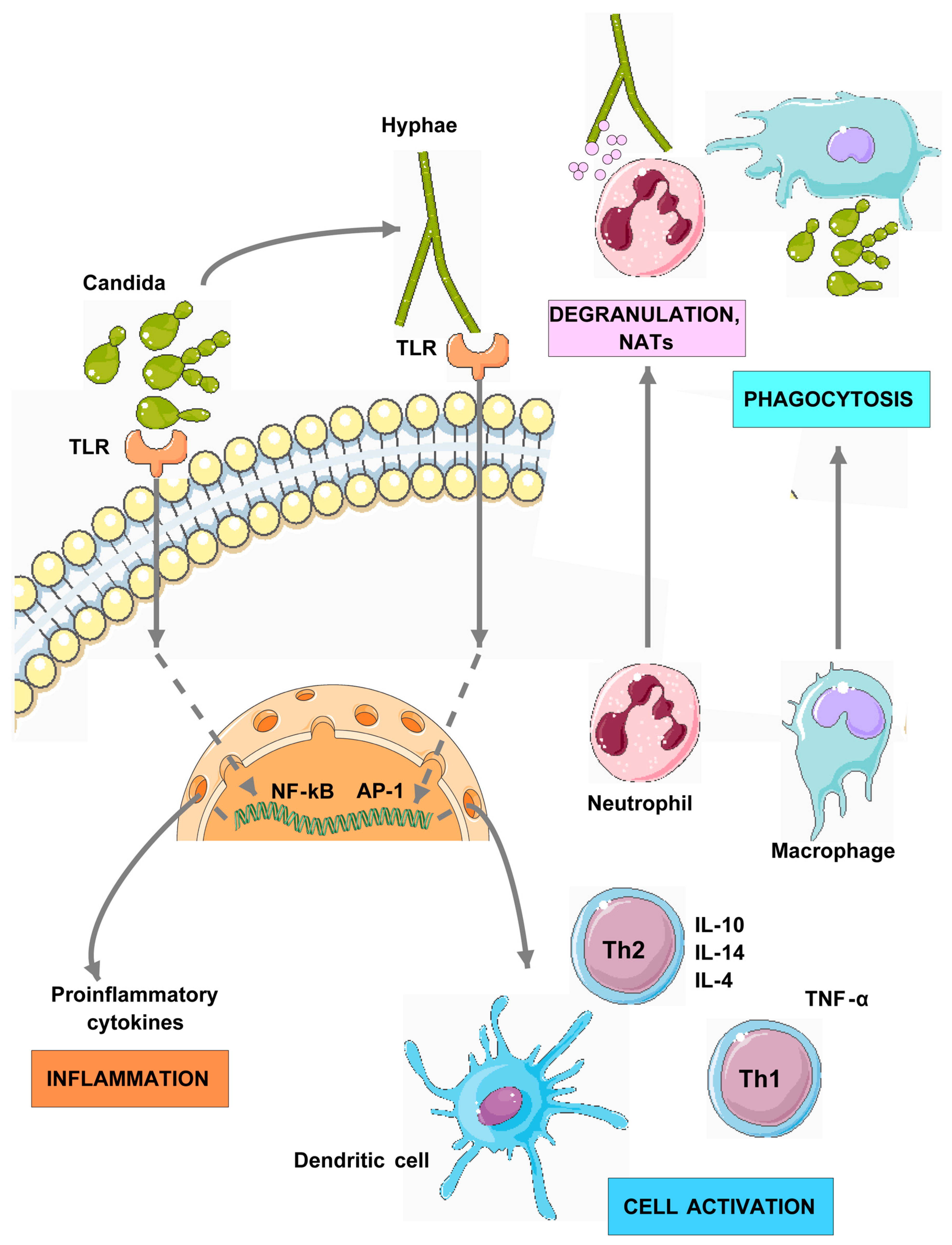 - Gozalbo, D. Role of Toll-like Receptors in Systemic Candida albicans Infections. Front. Biosci. 2016, 21, 278–302. [Google Scholar] [CrossRef] [PubMed]