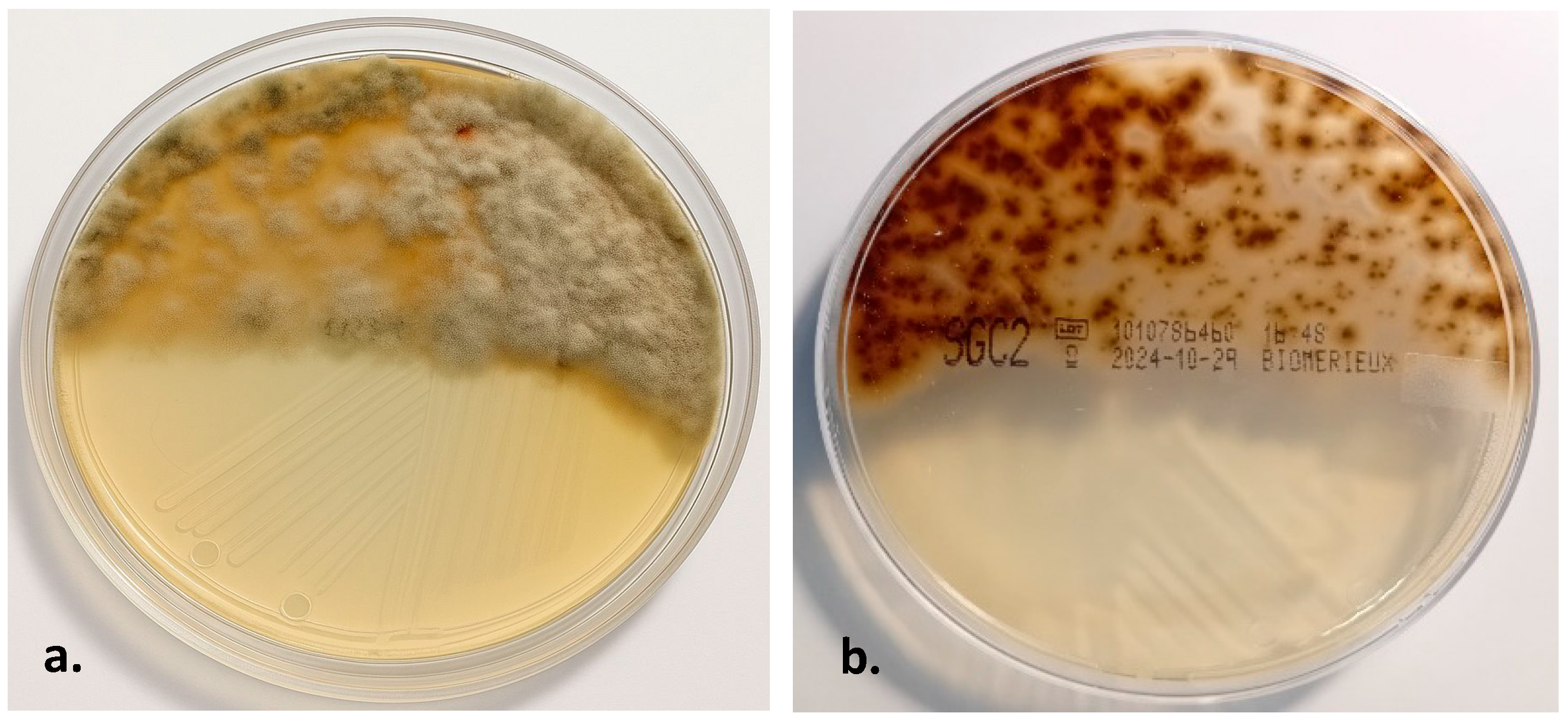 - Andreoni, S.; Farina, C.; Lombardi, P. Medical Mycology Atlas; Systems Comunicazioni: Gaggiano, Italy, 2003. [Google Scholar]