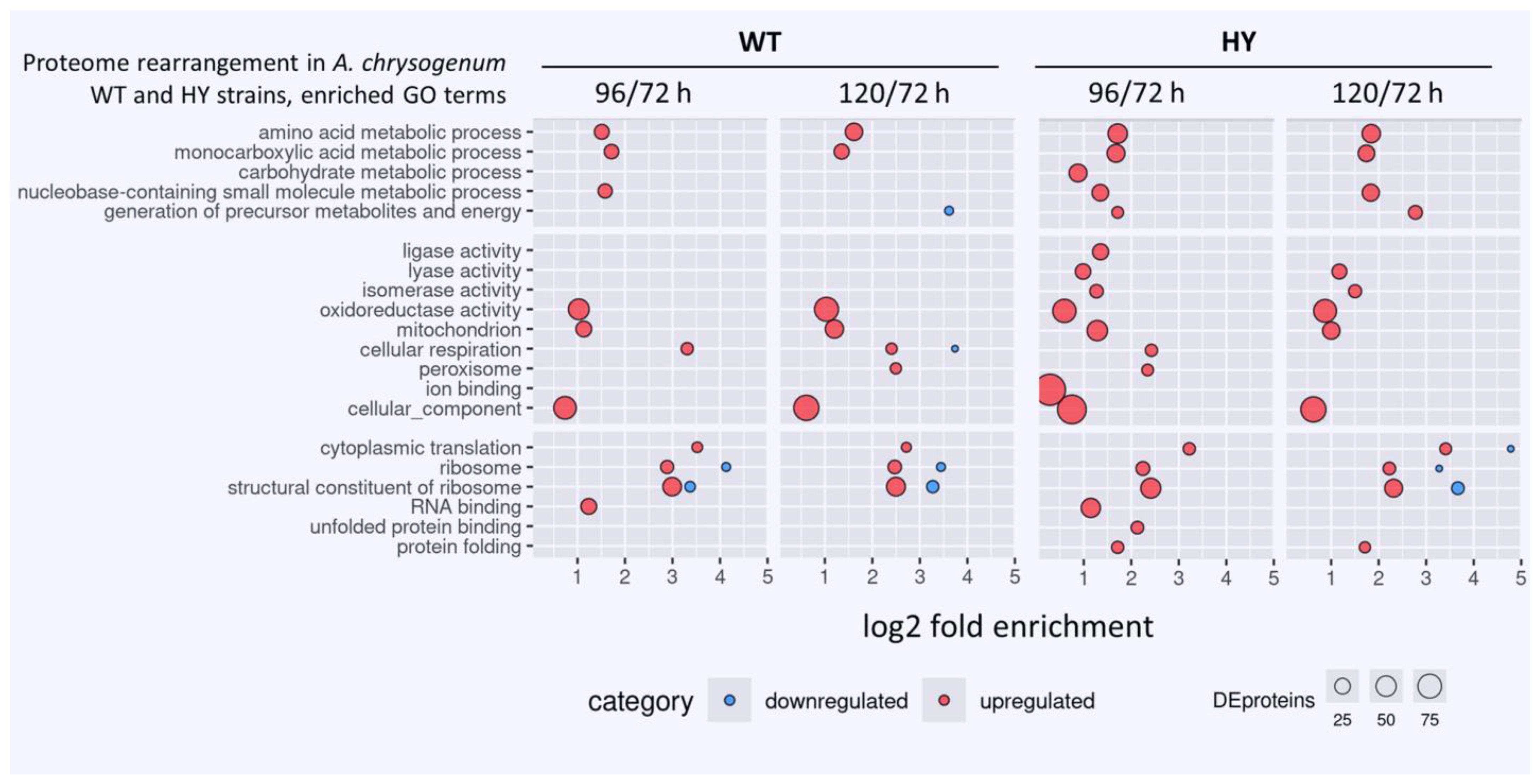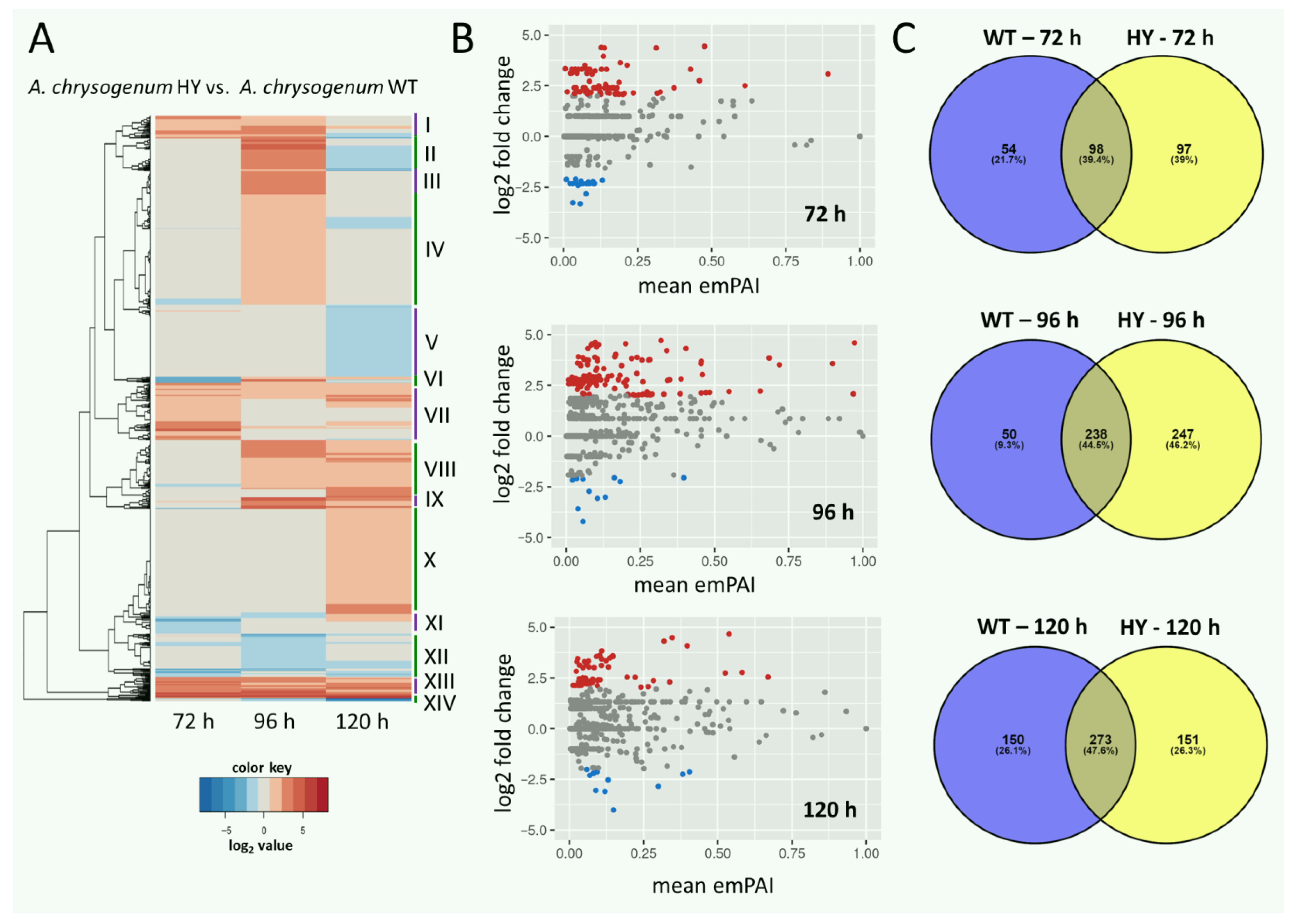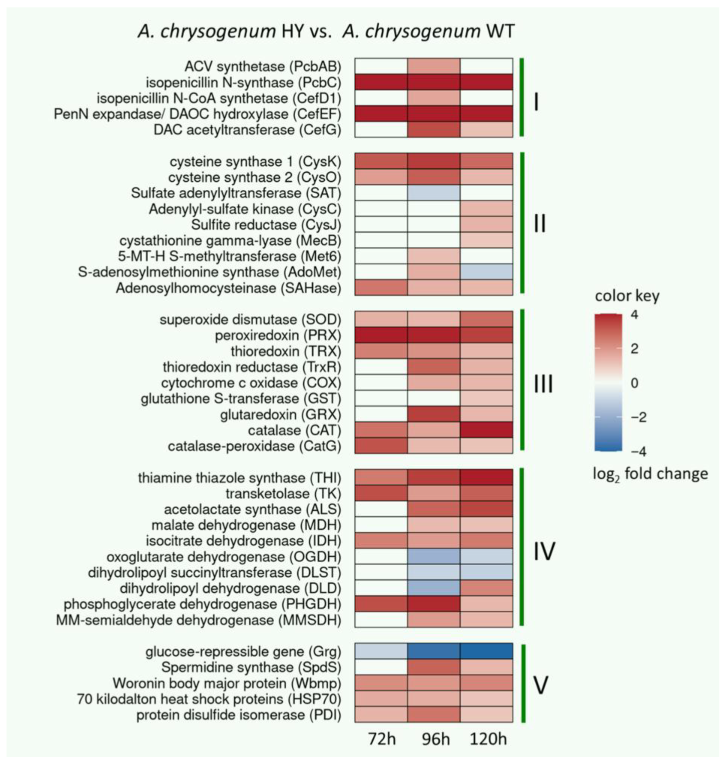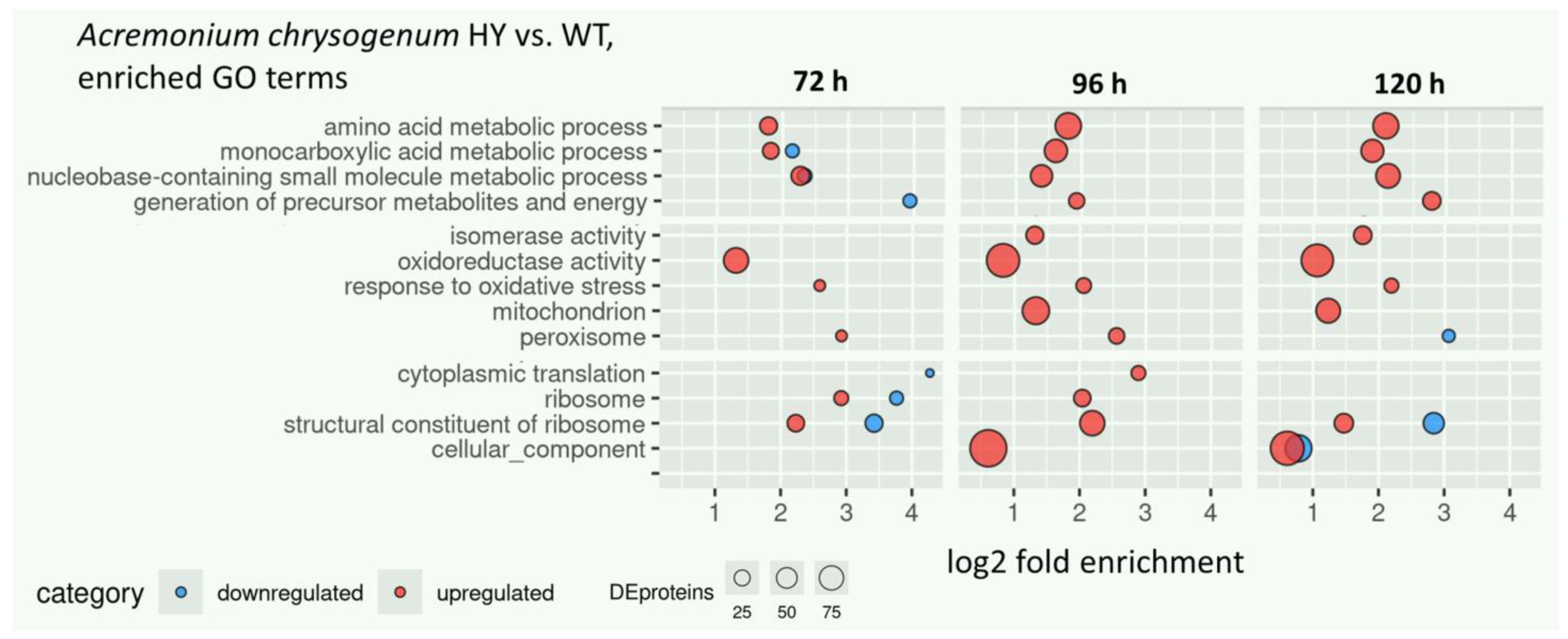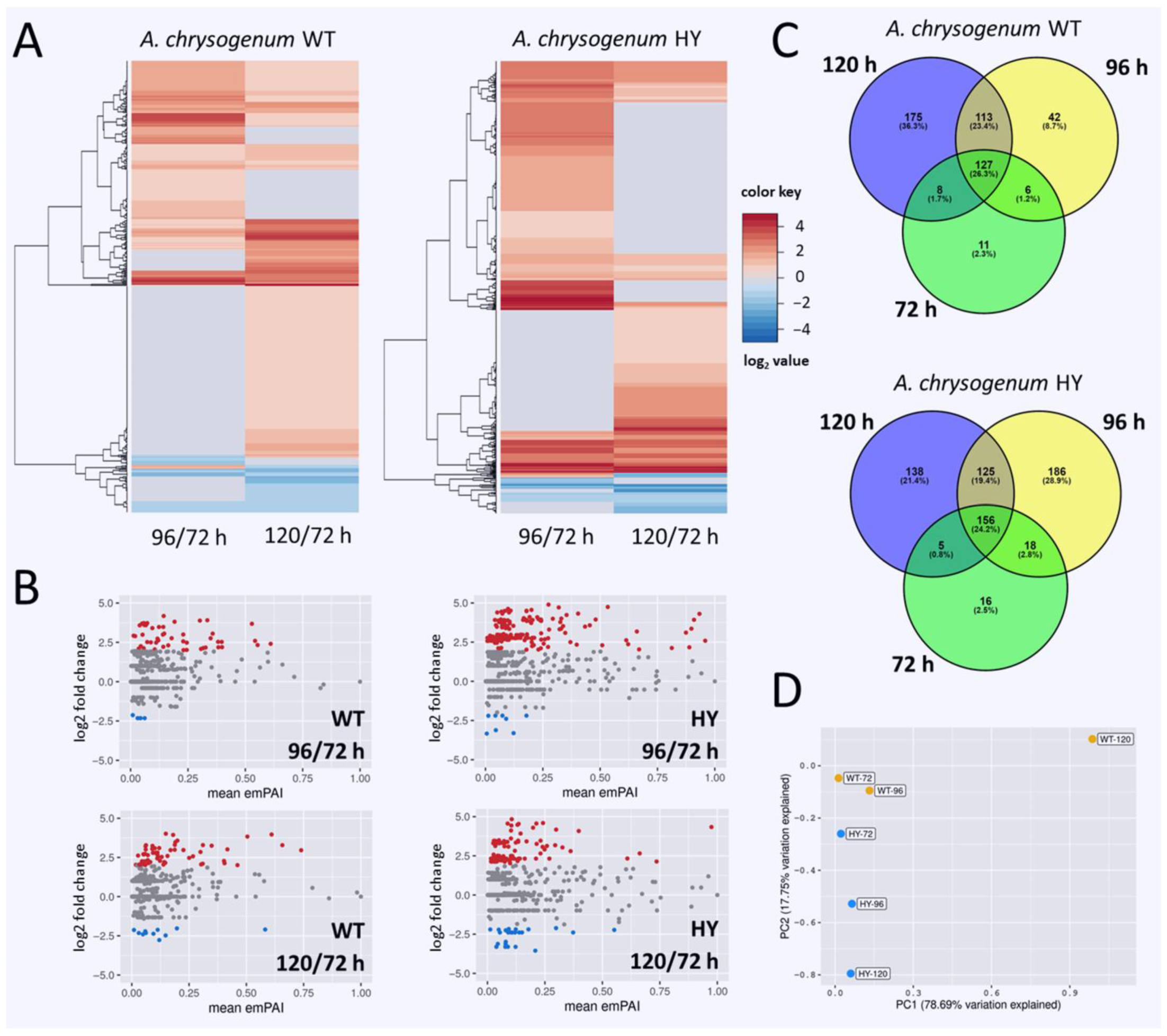 3.1. Alterations in the Proteome of A. chrysogenum HY Compared to A. chrysogenum WT at Different Time Points Fermentation Time Points