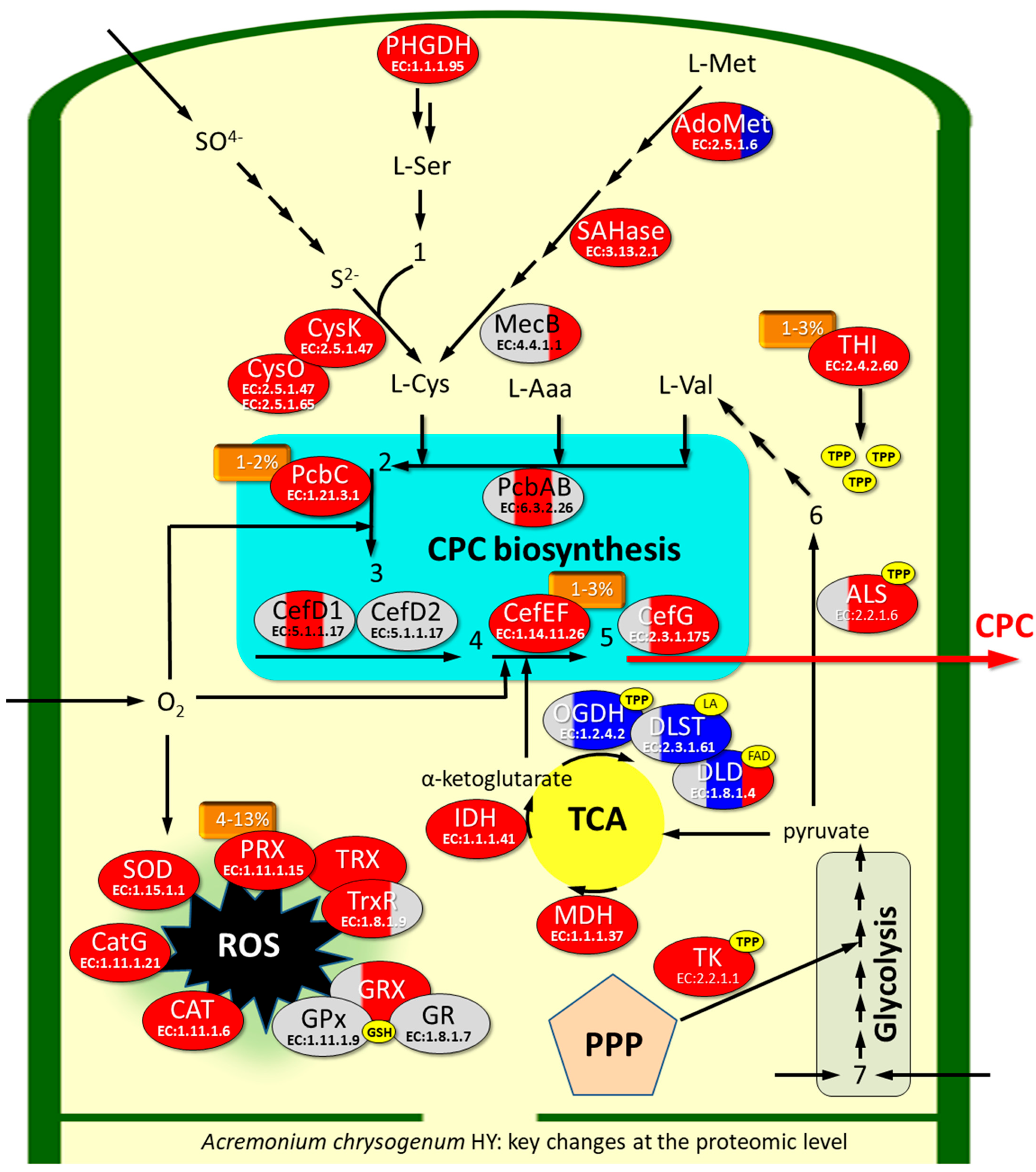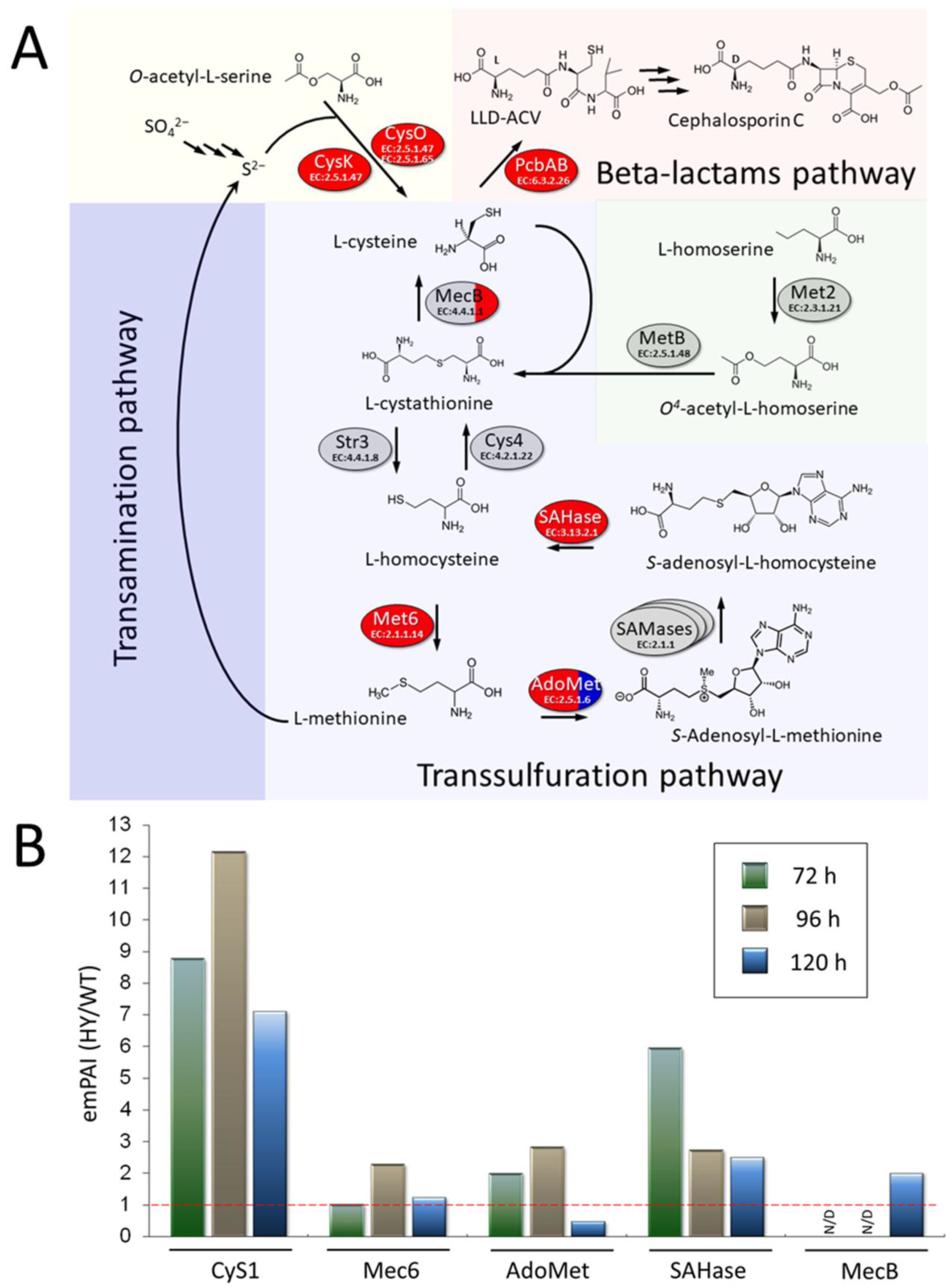 3.5. Upregulation of Sulfur Metabolism Enzymes in A. chrysogenum HY