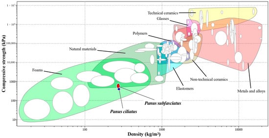 - Yang, Z.; Zhang, F.; Still, B.; White, M.; Amstislavski, P. Physical and mechanical properties of fungal mycelium-based biofoam. J. Mater. Civ. Eng. 2017, 29, 04017030. [Google Scholar] [CrossRef]
