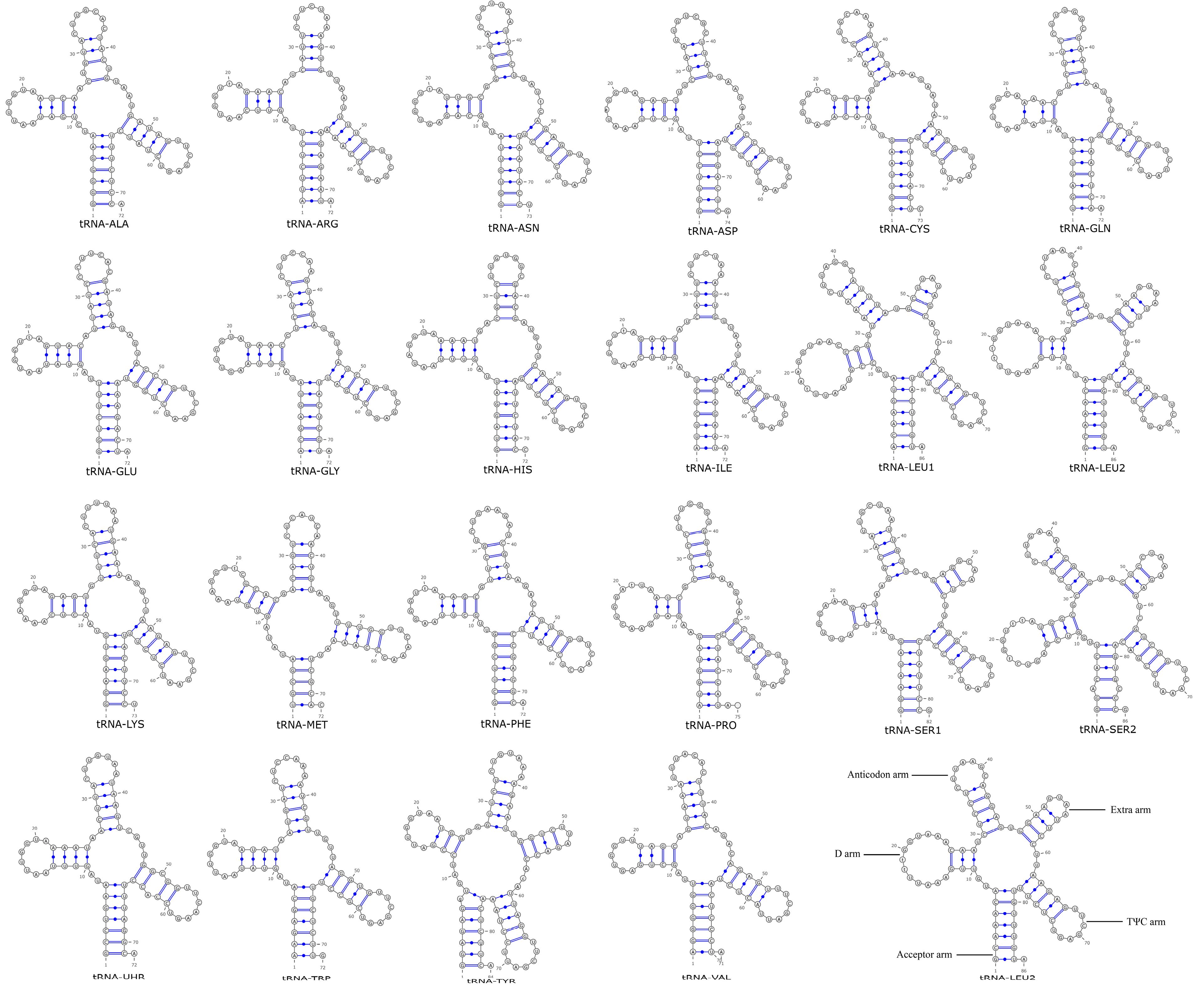 Figure 6. Structure prediction of mitochondrial genome tRNA of Phylloporus luxiensis.