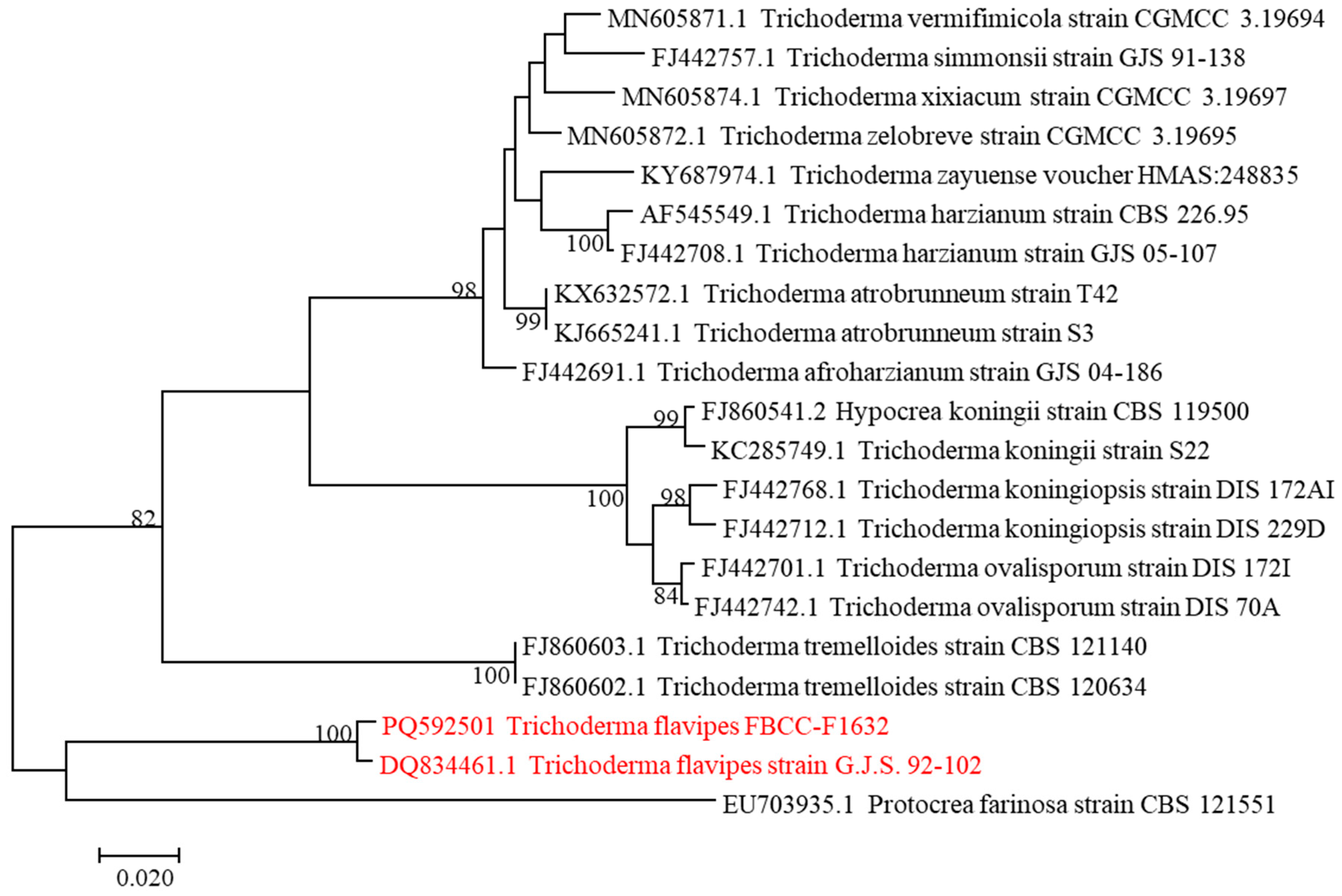 - Samuels, G.J. Trichoderma: Systematics, the sexual state, and ecology. Phytopathology 2006, 96, 195–206. [Google Scholar] [CrossRef]