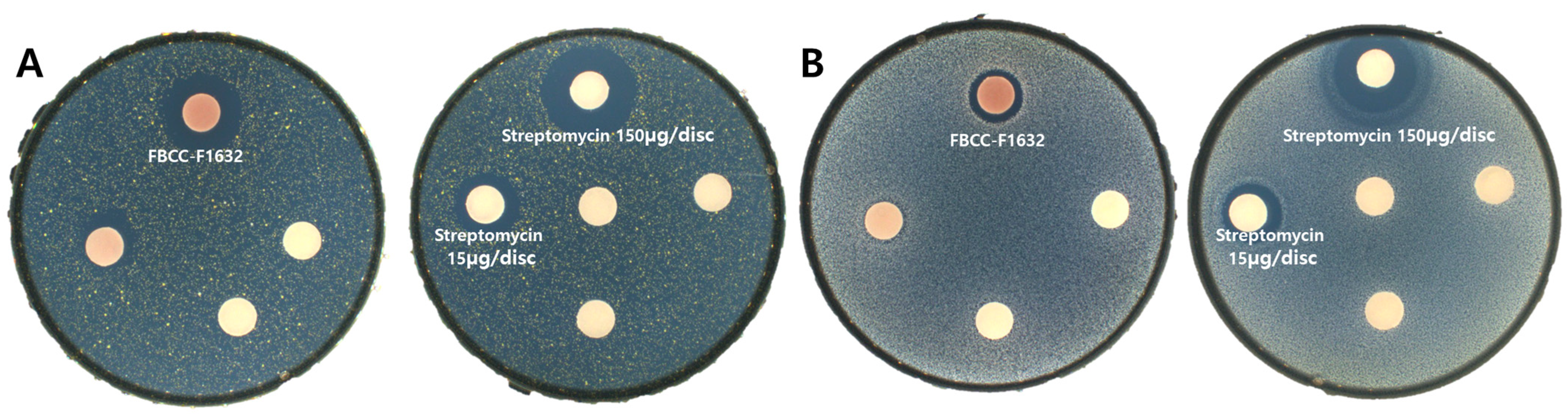 3.5. Antimicrobial Activity of Compounds Isolated from FBCC-F1632