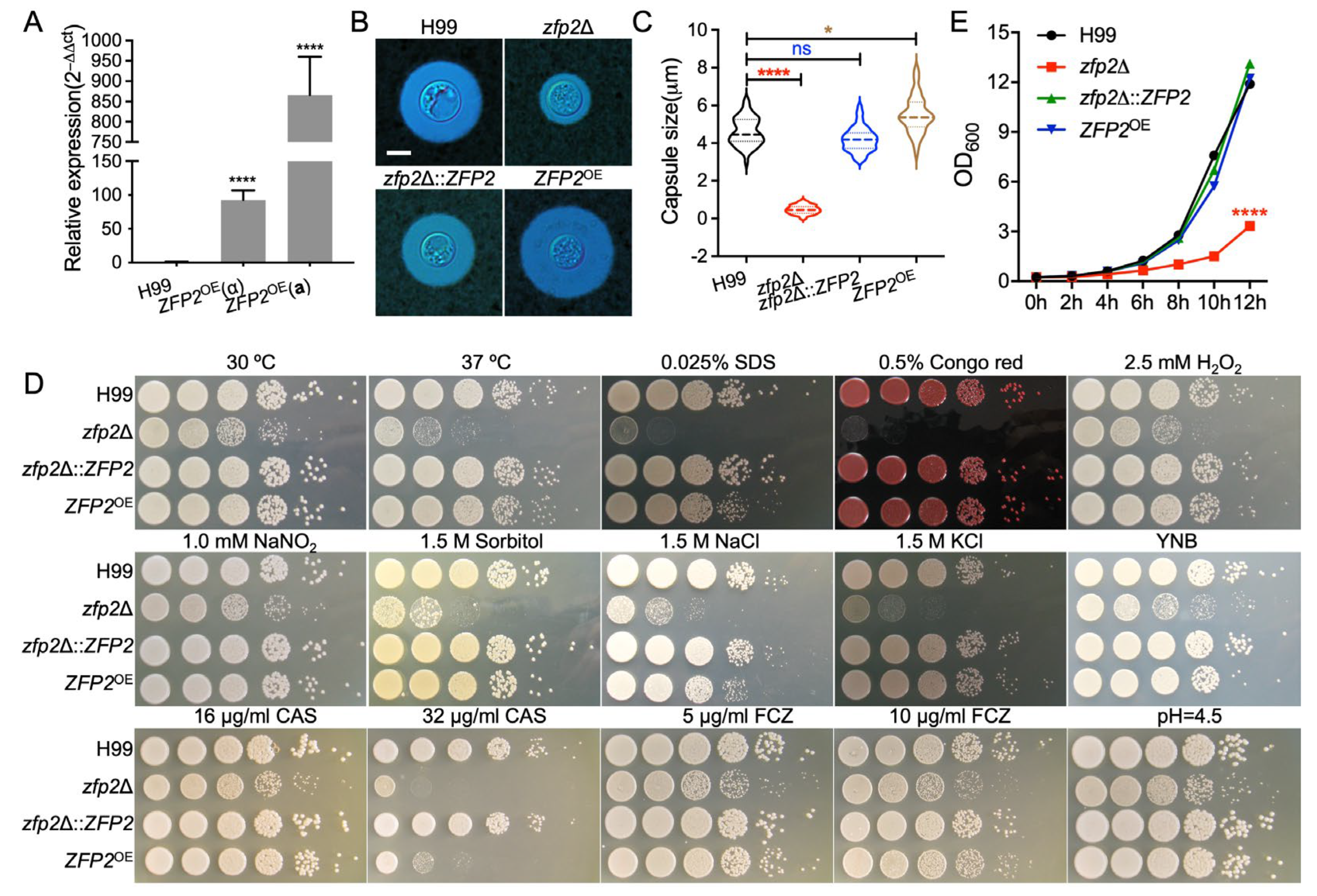 3.2. Zfp2 Is Involved in Capsule Formation and Cell Wall/Membrane Integrity in C. neoformans