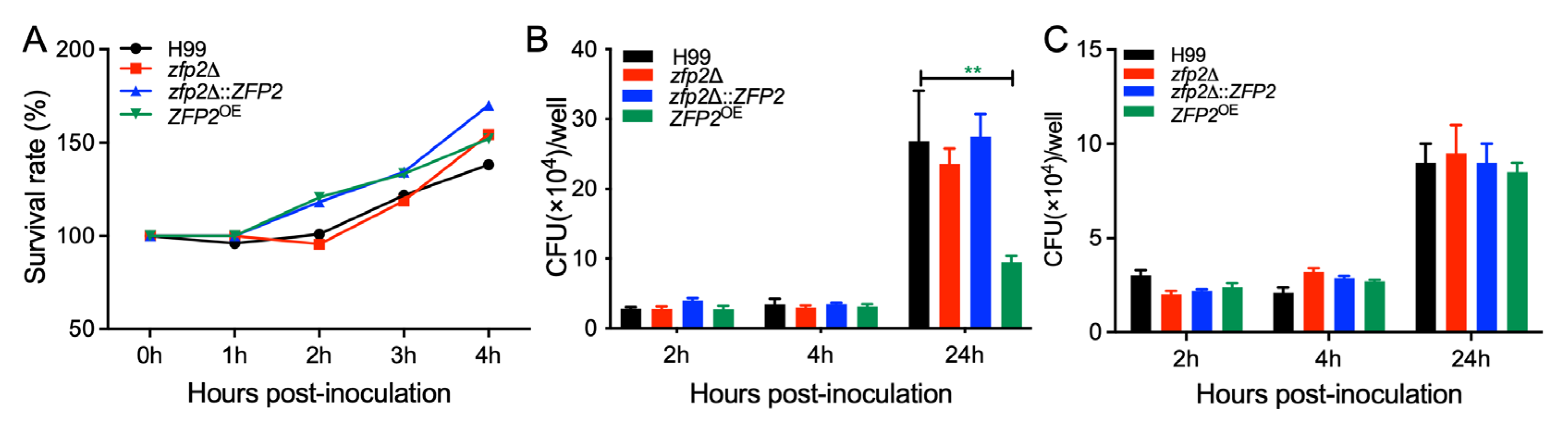 3.6. Zfp2 Is Involved in the Proliferation of C. neoformans in Macrophage Cells