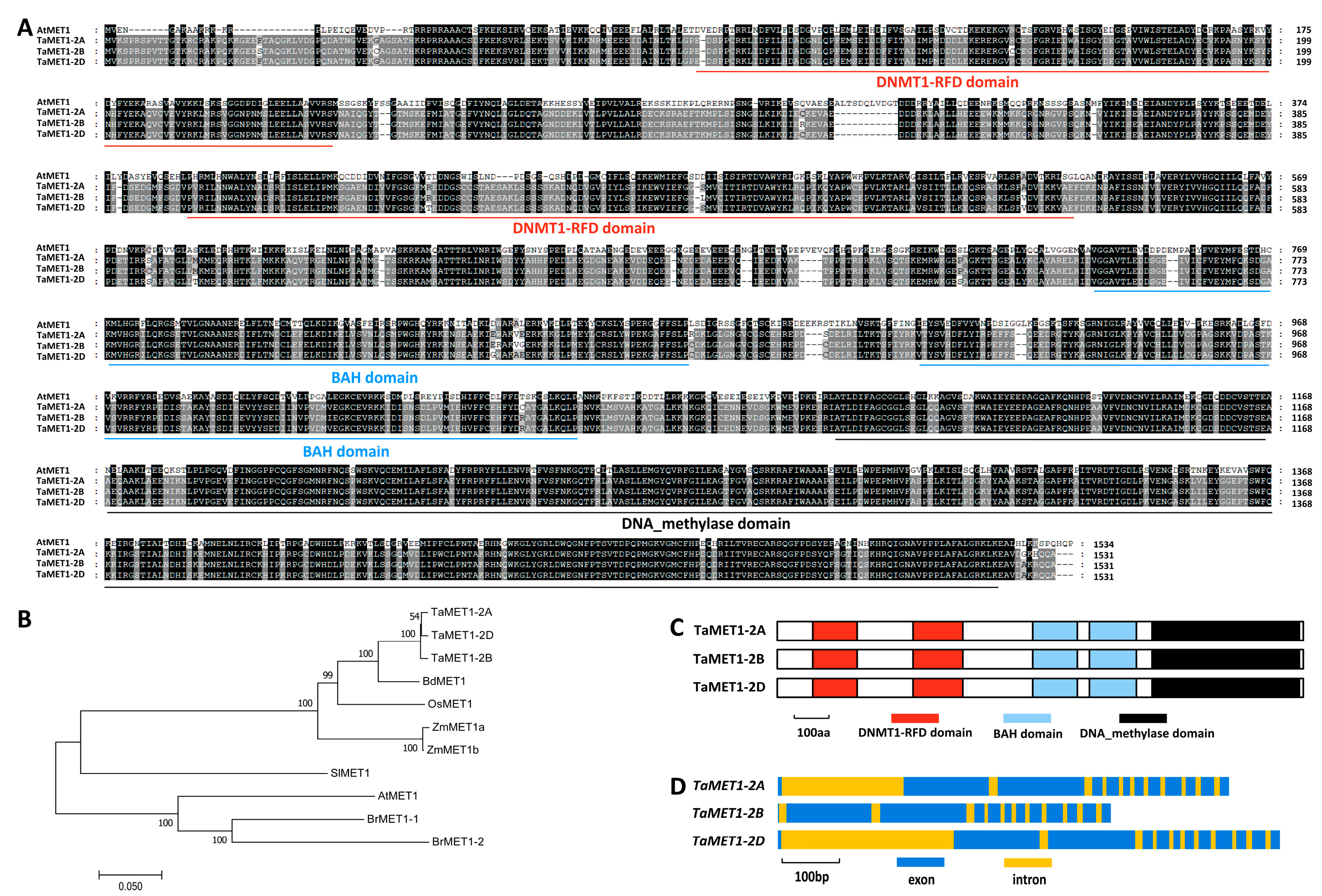 3.1. Homology-Based Identification of Wheat TaMET1 Genes