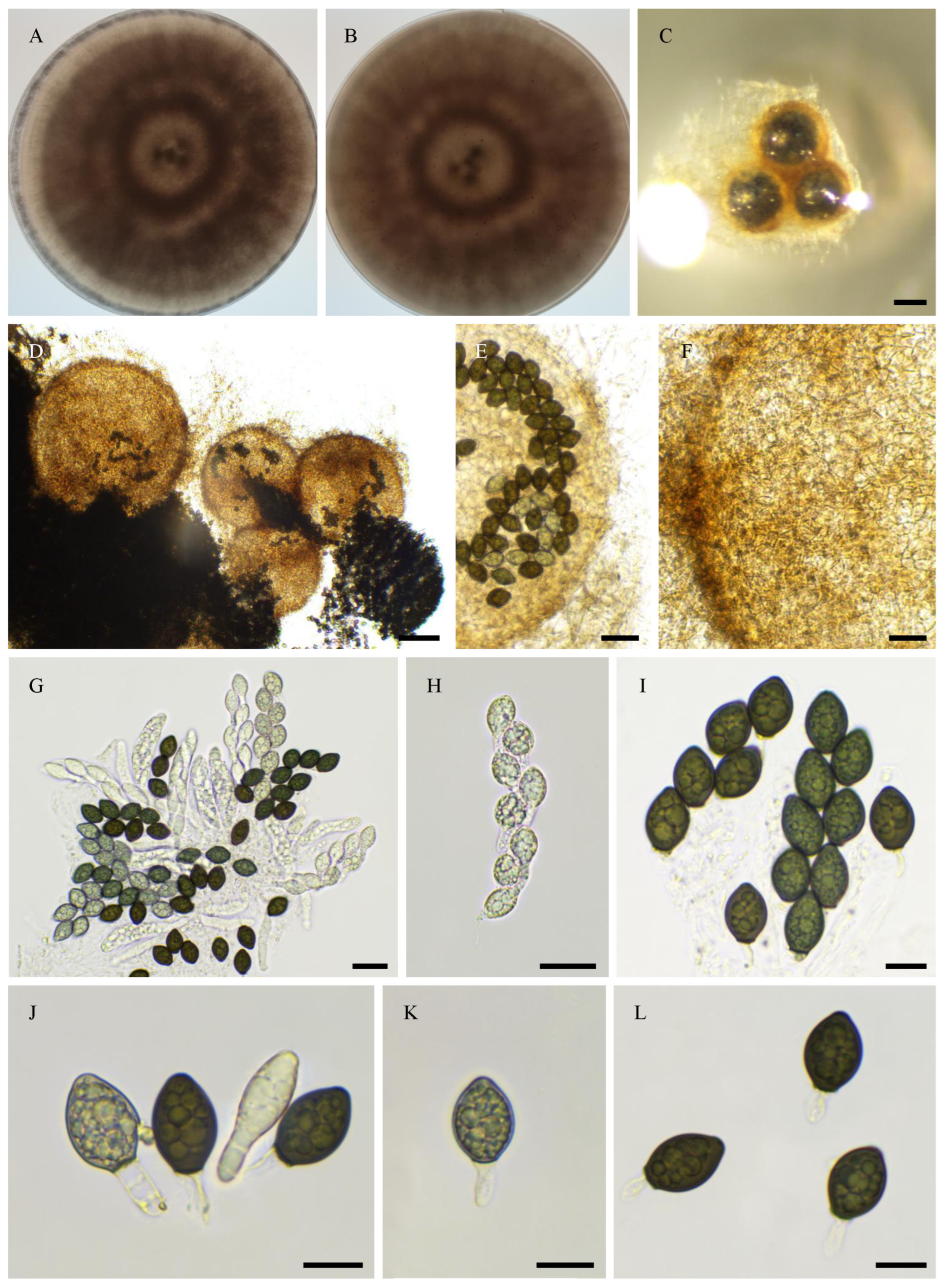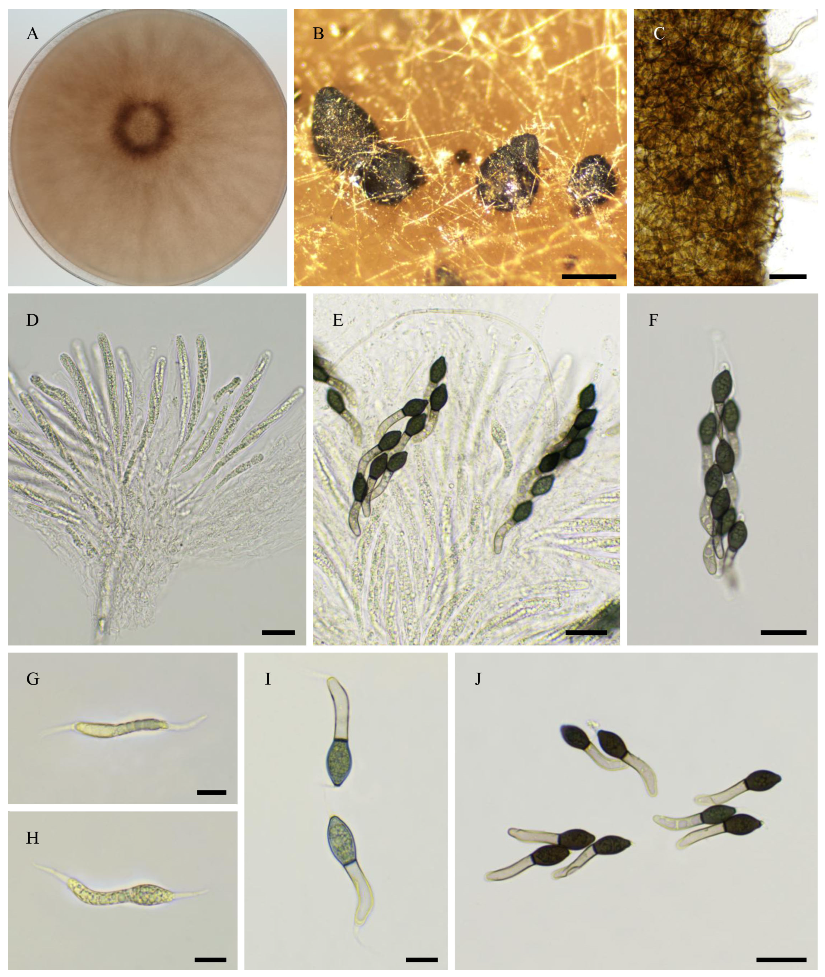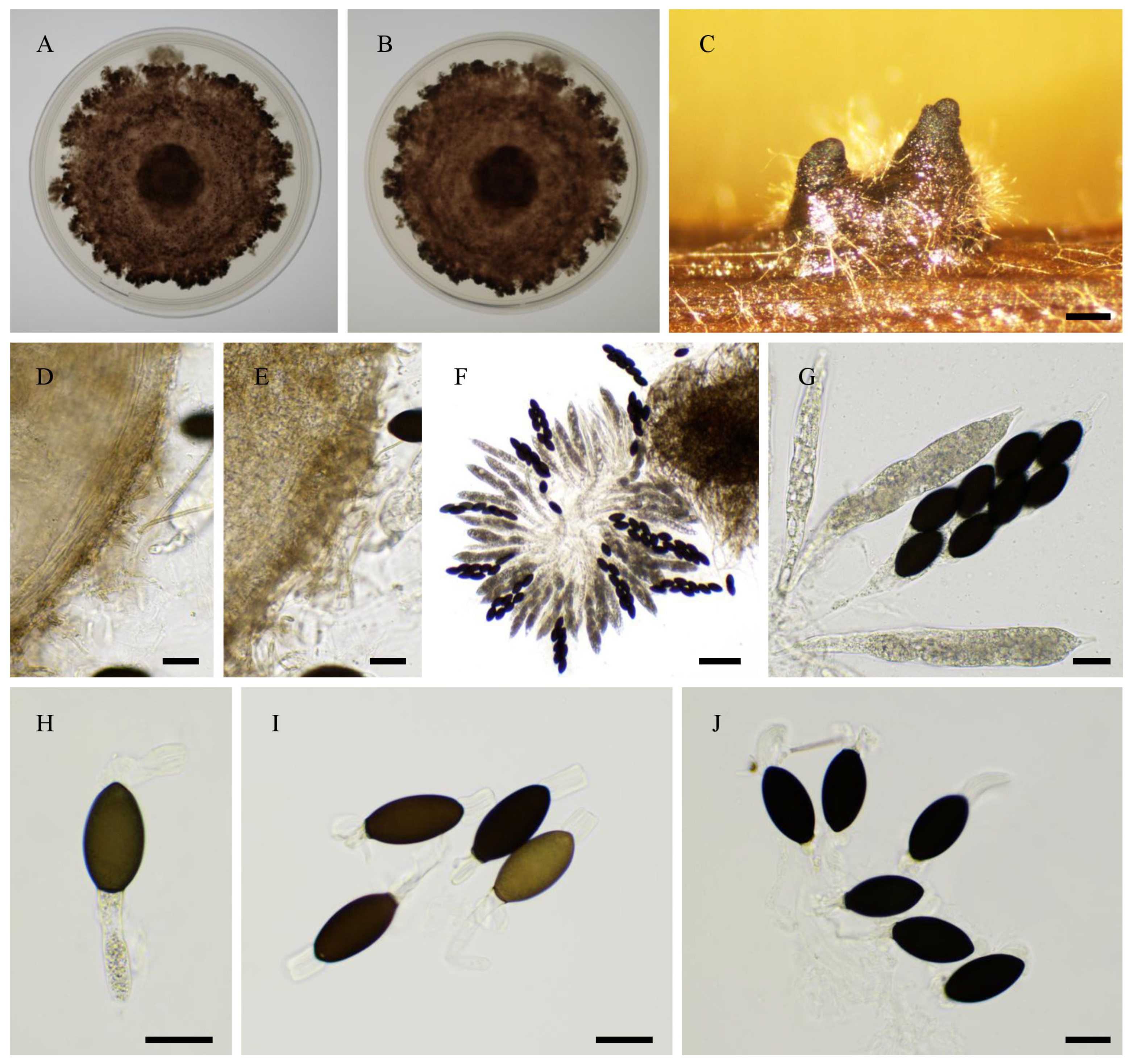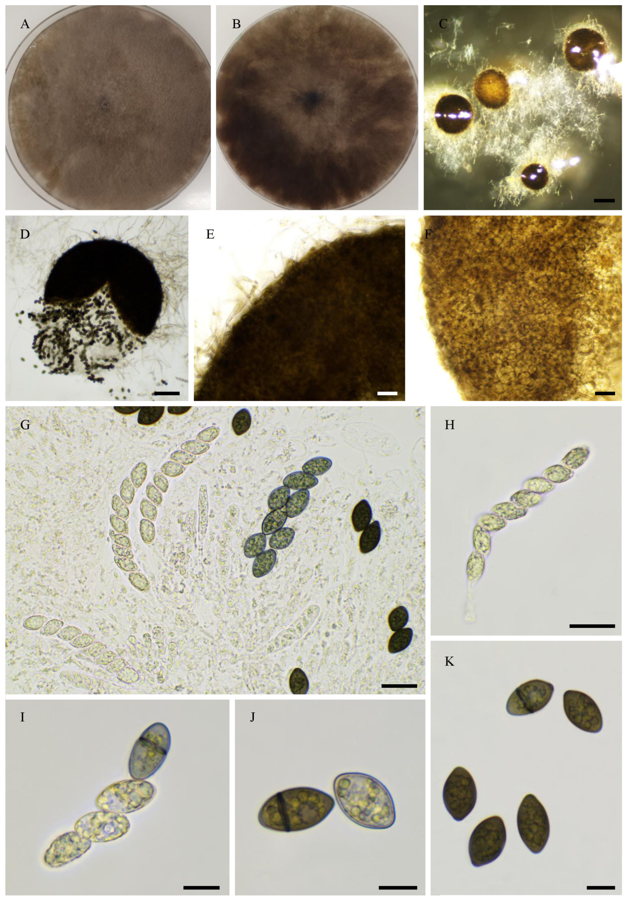 - Cai, L.; Jeewon, R.; Hyde, K.D. Molecular systematics of Zopfiella and allied genera: Evidence from multi-gene sequence analyses. Mycol. Res. 2006, 110, 359–368. [Google Scholar] [CrossRef]