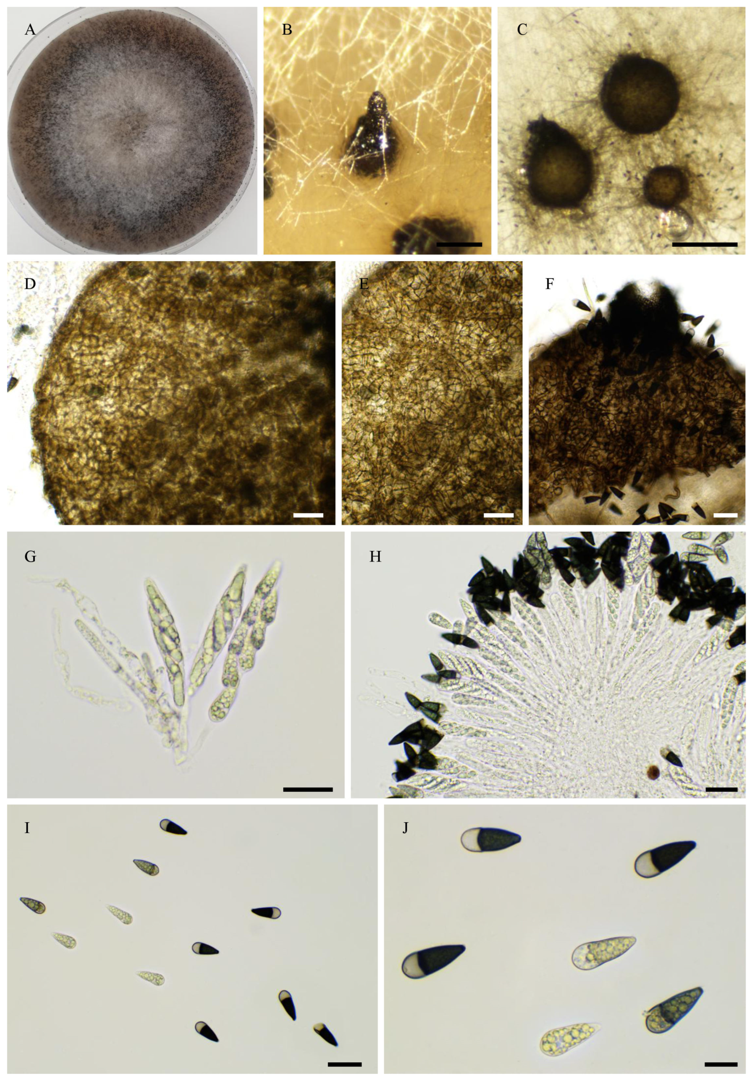 Tangthirasunun N, Gautier V, Lalanne C, Bonometti L, Cros-Arteil S, Hayes RD, Calhoun S, Riley R, Pangilinan J, Lipzen A, et al. Diversity of Sordariales Fungi: Identification of Seven New Species of Naviculisporaceae Through Morphological Analyses and Genome Sequencing. Journal of Fungi. 2025; 11(12):880. https://doi.org/10.3390/jof11120880