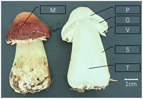 Different tissue samples of S. rugosoannulata for transcriptome sequencing, M: pileipellis; P: pileus; G: gill; V: veil; S: stipe; T: trama.