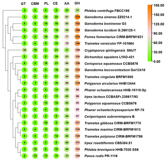 2.4. CAZy Family and Cytochrome P450 Analyses