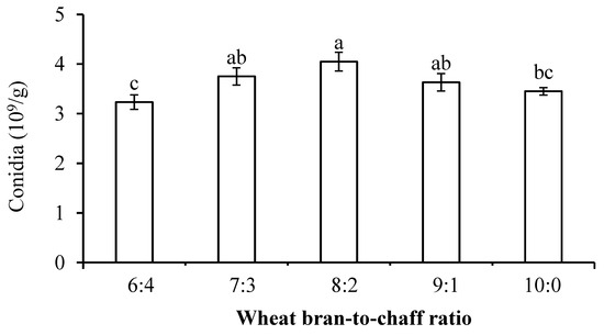 | Substrate | Conidia Yield (109/g) | Germination (%) |
