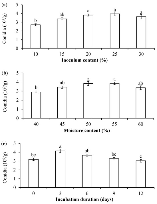 3.2. Optimization of Solid Fermentation for B. bassiana PfBb