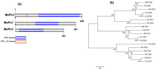 3.2. Phylogenetic Analyses and Identification of MoPtc1, MoPtc2, and MoPtc5