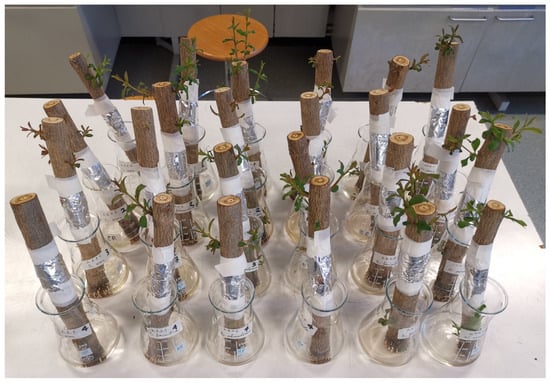 Pomegranate twigs (4 years old) inoculated and placed in water.