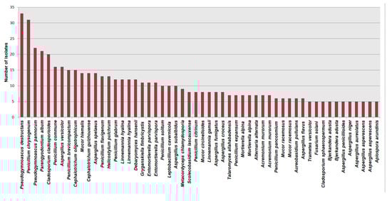 - Dyląg, M.; Sawicki, A.; Ogórek, R. Diversity of Species and Susceptibility Phenotypes Toward Commercially Available Fungicides of Cultivable Fungi Colonizing Bones of Ursus spelaeus on Display in Niedźwiedzia Cave (Kletno, Poland). Diversity 2019, 11, 224. [Google Scholar] [CrossRef]