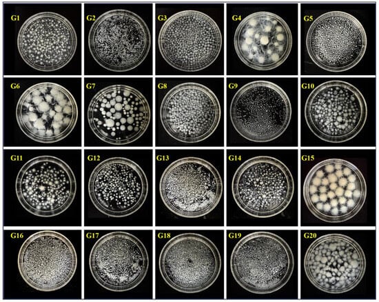 The strains (Ganoderma spp. G1–G20) were obtained from the microbiological culture collection center of Jilin Agricultural University, Changchun, China. The activated strain was inoculated onto a plate containing PDA medium and incubated at 28 °C for 5 days.