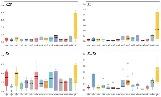 3.4. Variation, Genetic Distance and Evolutionary Rates of 15 Core PCGs