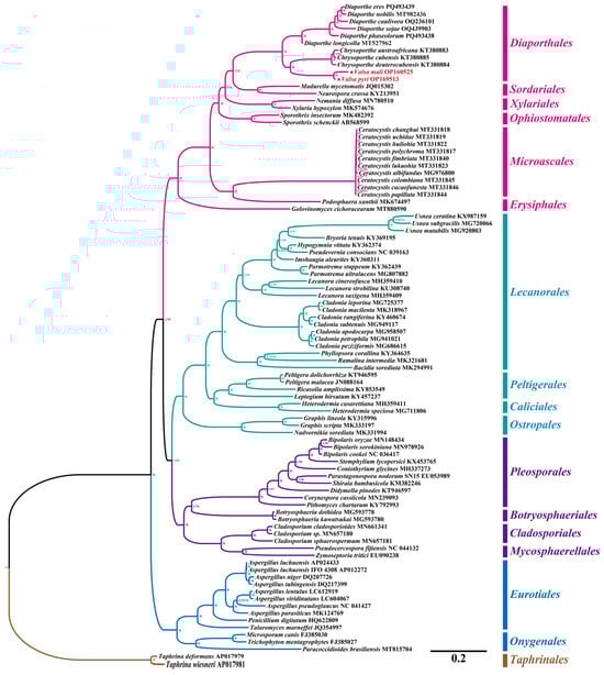 Xing, G.; Xie, S.; Qiao, Z.; Ma, Q.; Xu, C.; Geng, Y.; Guo, Y.; Zang, R.; Zhang, M. Characterization and Phylogenetic Analysis of the Complete Mitogenomes of Valsa mali and Valsa pyri. J. Fungi 2025, 11, 348. https://doi.org/10.3390/jof11050348