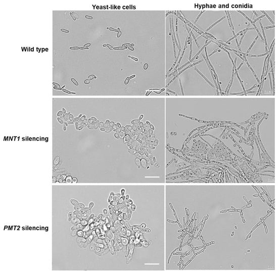 3.1. Silencing of Sporothrix schenckii MNT1 and PMT2 and Morphology Abnormalities