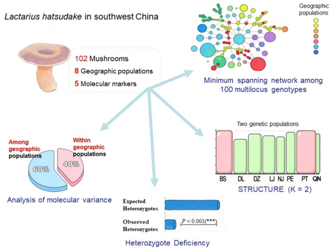 Zhao, K.; Mao, M.; Wang, X.; Xu, J. Inbreeding and Genetic Differentiation Among Geographic Populations of Lactarius hatsudake in Southwest China. J. Fungi 2025, 11, 438. https://doi.org/10.3390/jof11060438
