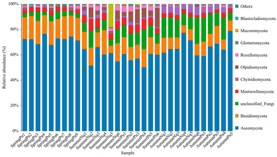 3.2. Seasonal Variation Influenced Fungal Communities