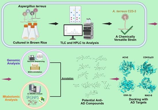 Exploring the Anti-Alzheimer’s Disease Potential of Aspergillus terreus C23-3 Through Genomic Insights, Metabolomic Analysis, and Molecular Docking
