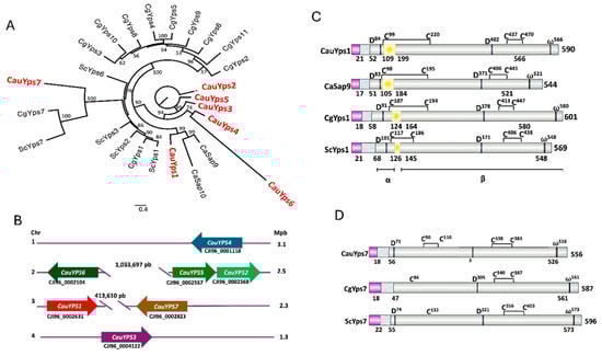 3.1. C. auris Presents a Family of YPS Multigene Encoding Putative Yapsins