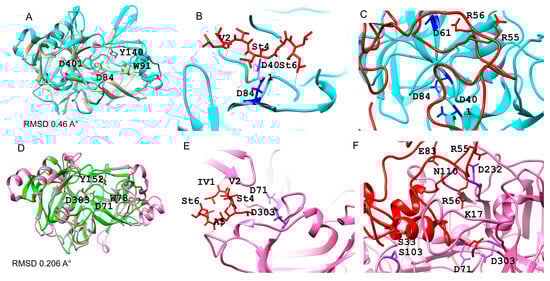 - Waterhouse, A.; Bertoni, M.; Bienert, S.; Studer, G.; Tauriello, G.; Gumienny, R.; Heer, F.T.; de Beer, T.A.P.; Rempfer, C.; Bordoli, L.; et al. SWISS-MODEL: Homology modelling of protein structures and complexes. Nucleic Acids Res. 2018, 46, W296–W303. [Google Scholar] [CrossRef]