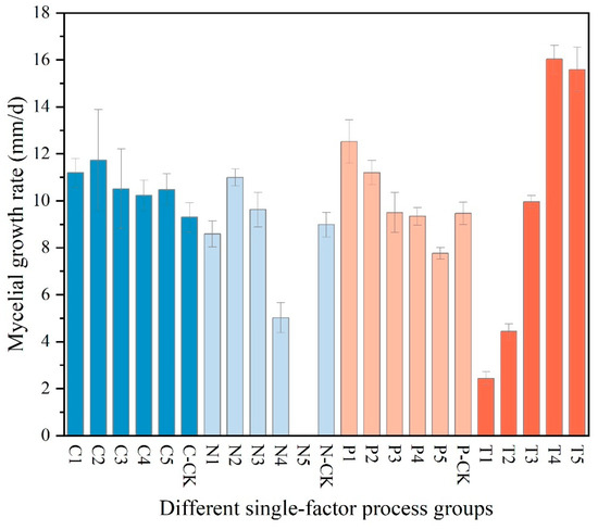 Each single-factor experiment comprised five replicates for each treatment group. The data on hyphal growth rates were analyzed using Excel 2024. Data on hyphal growth rates were imported into SPSS version 29 for the purpose of conducting a one-way ANOVA. Assuming homogeneity of variance, post hoc tests were selected as “LSD” and “Duncan”. The analyses were performed at significance levels of 0.05 and 0.01, respectively, with the “Descriptives” and “Homogeneity of variance test” options enabled for both analyses.