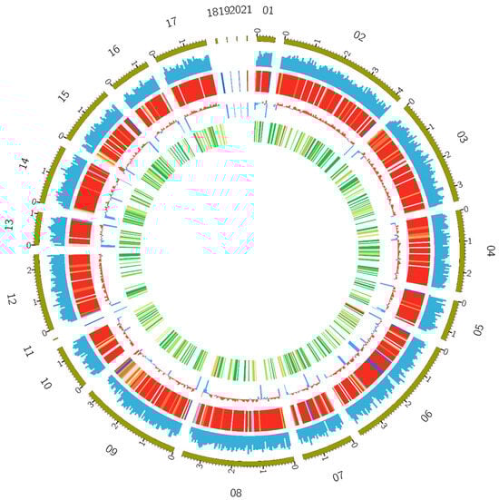 - Krzywinski, M.; Schein, J.; Birol, I.; Connors, J.; Gascoyne, R.; Horsman, D.; Jones, S.J.; Marra, M.A. Circos: An information aesthetic for comparative genomics. Genome Res. 2009, 19, 1639–1645. [Google Scholar] [CrossRef]