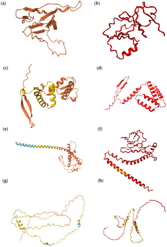 - Jumper, J.; Evans, R.; Pritzel, A.; Green, T.; Figurnov, M.; Ronneberger, O.; Tunyasuvunakool, K.; Bates, R.; Žídek, A.; Potapenko, A.; et al. Highly Accurate Protein Structure Prediction with AlphaFold. Nature 2021, 596, 583–589. [Google Scholar] [CrossRef] [PubMed]