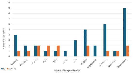 Distribution of patients with newly diagnosed histoplasmosis by month of hospitalization.