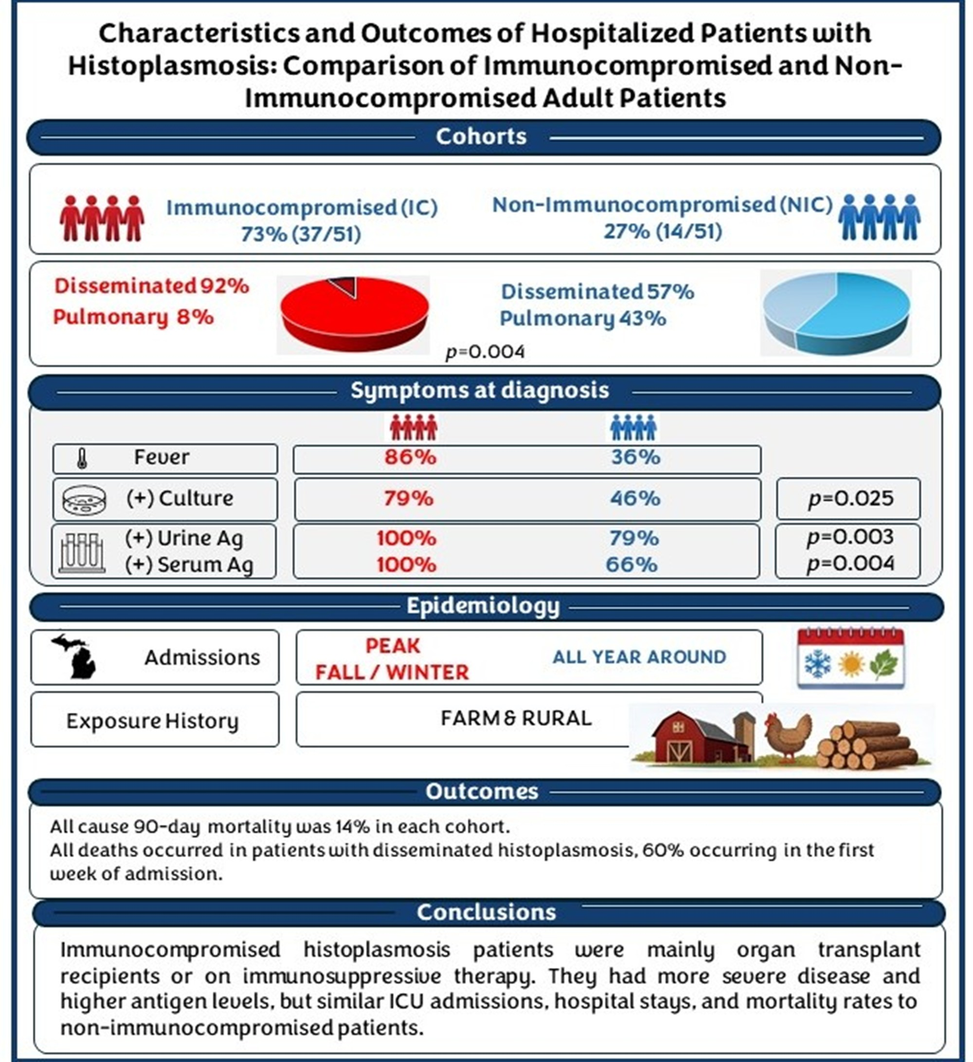 APA StyleDalton, L. M., Kauffman, C. A., & Miceli, M. H. (2025). Characteristics and Outcomes of Hospitalized Patients with Histoplasmosis: Comparison of Immunocompromised and Non-Immunocompromised Adult Patients. Journal of Fungi, 11(9), 671. https://doi.org/10.3390/jof11090671