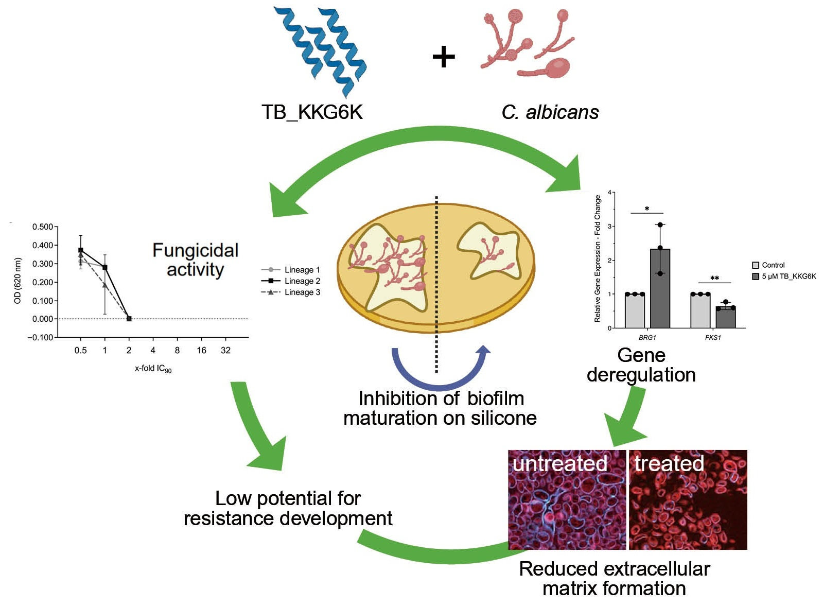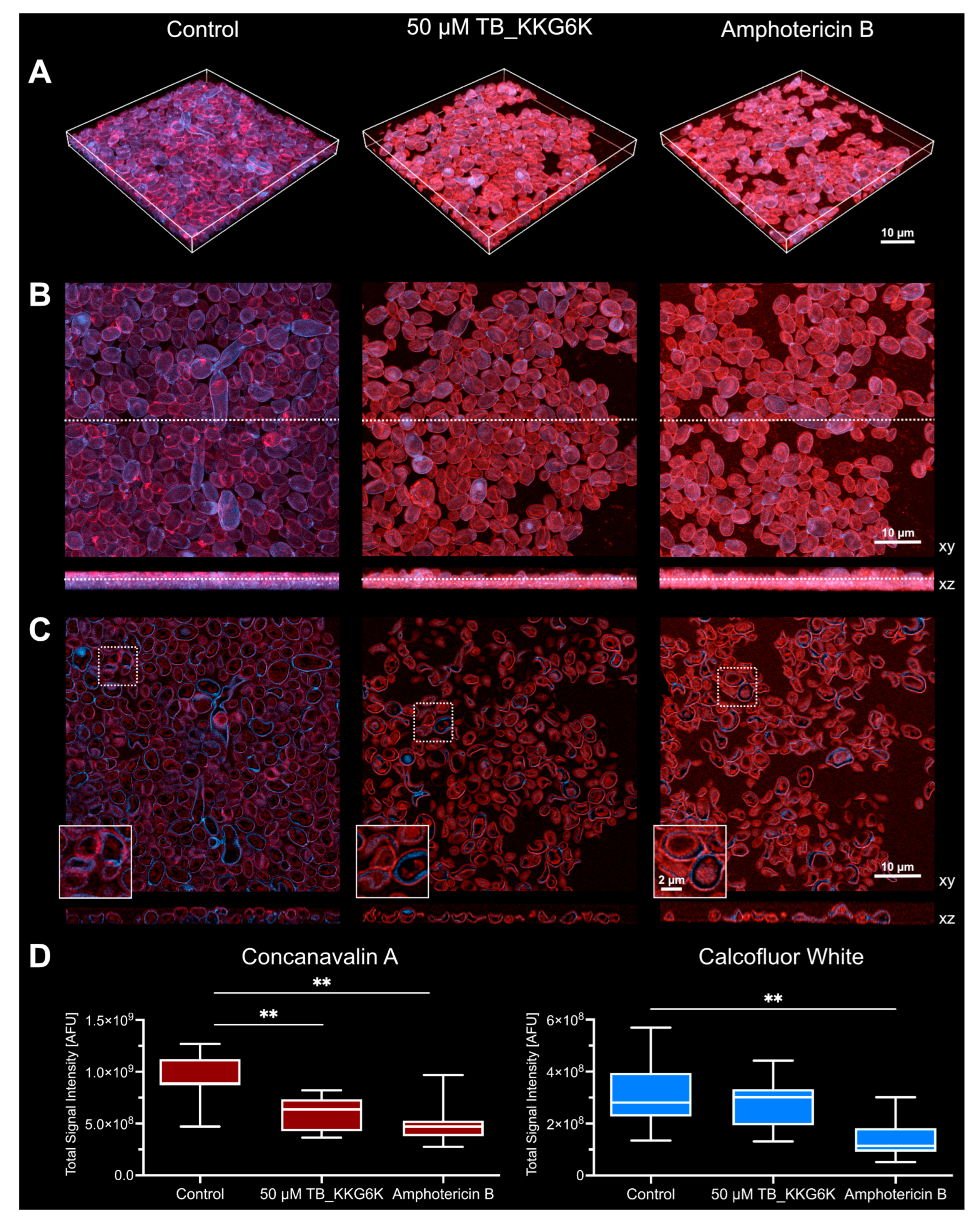 3.5. TB_KKG6K Reduces ECM Formation in C. albicans Biofilm
