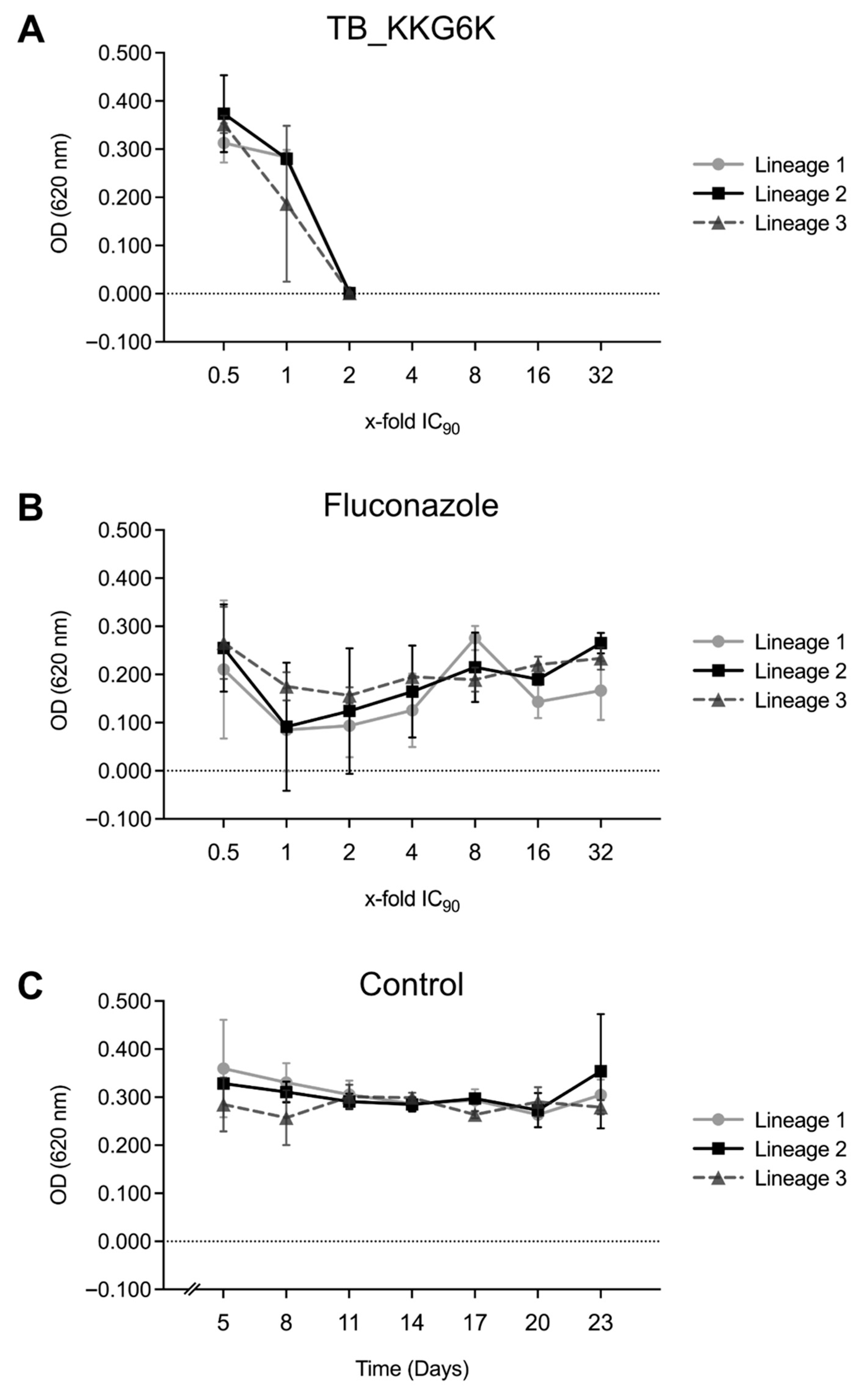 3.3. TB_KKG6K Has Low Potential to Induce Adaptive Mechanisms in C. albicans